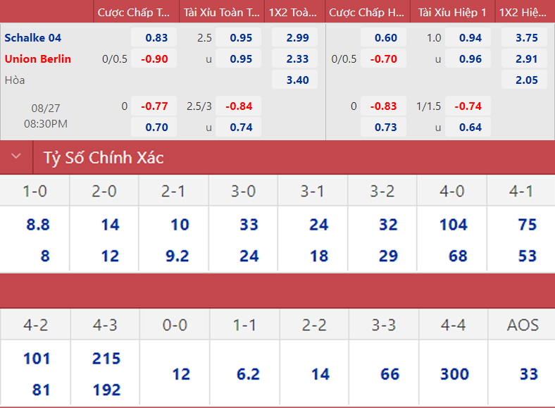 Soi kèo nhà cái Schalke vs Union Berlin. Nhận định bóng đá Bundesliga (20h30, 27/8). Dự đoán bóng đá Schalke vs Union Berlin. Tỷ lệ kèo bóng đá Đức.