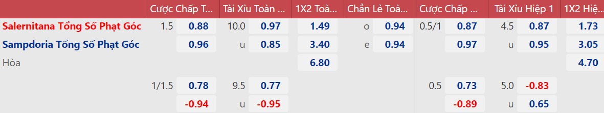 Dự đoán: Salernitana 1-1 Sampdoria