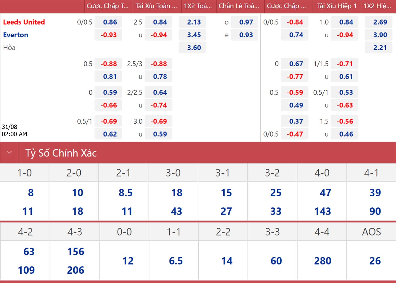 Soi kèo nhà cái Leeds vs Everton. Nhận định dự đoán bóng đá Ngoại hạng Anh (02h00, 31/8). Dự đoán bóng đá Leeds vs Everton. Tỷ lệ kèo bóng đá Anh.