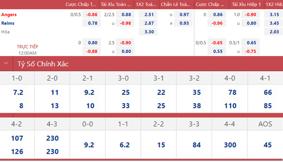 Bên kia chiến tuyến, Reims đã cầm hòa Lyon 1-1 ở vòng đấu gần nhất. Chất lượng đội hình của Reims tương đối tốt nên họ hy vọng sẽ có điểm trước Angers.