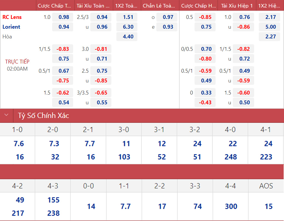 Trên sân nhà, Lens chưa thua Lorient trong 3 trận gần nhất. Lorient chỉ có thể giành được 1 trận hòa 2-2 với Lens. Do đó, Lens được đánh giá cao hơn trong trận đấu này là điều dễ hiểu.