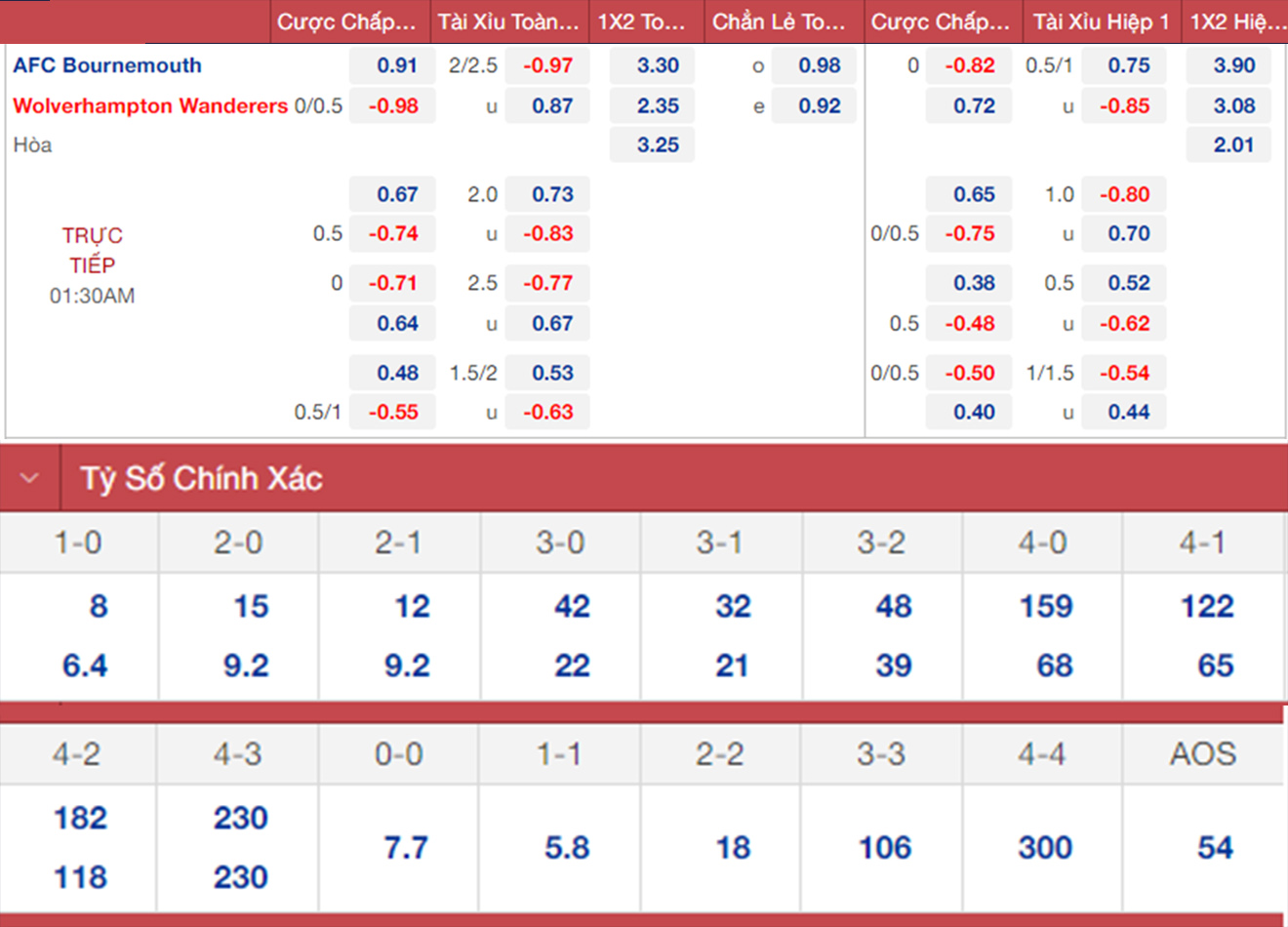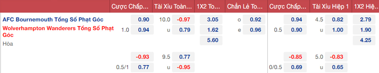 Bournemouth toàn thua 3 trận gần nhất và vừa sa thải HLV Scott Parker. Wolves cũng chẳng khá hơn. Trong 4 trận ở mùa giải này, Wolves hoà 2 và thua 2. Bournemouth và Wolves đều đang nằm trong nhóm cầm đèn đỏ. Cả hai đội có phong độ không tốt do vậy, nhiều khả năng trận đấu tới sẽ có kết quả hoà.