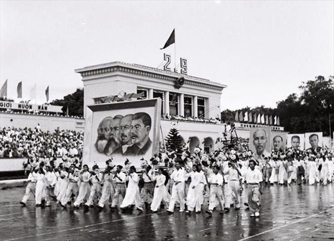 Diễu hành trên Quảng trường Ba Đình (Hà Nội) chào mừng Ngày Quốc khánh 2/9/1960. Ảnh: Tư liệu TTXVN