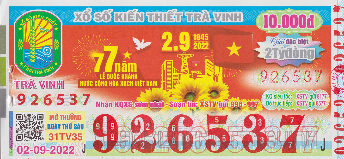 XSTV - Xổ số Trà Vinh ngày 2/9/2022: