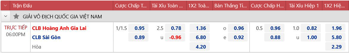 * Dự đoán: HAGL - Sài Gòn: 2-1