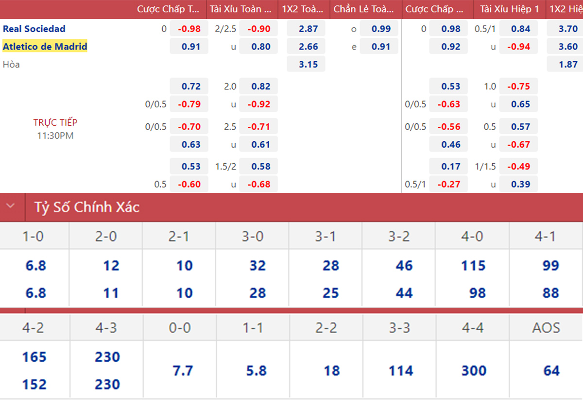 Soi kèo, nhận định Real Sociedad vs Atletico