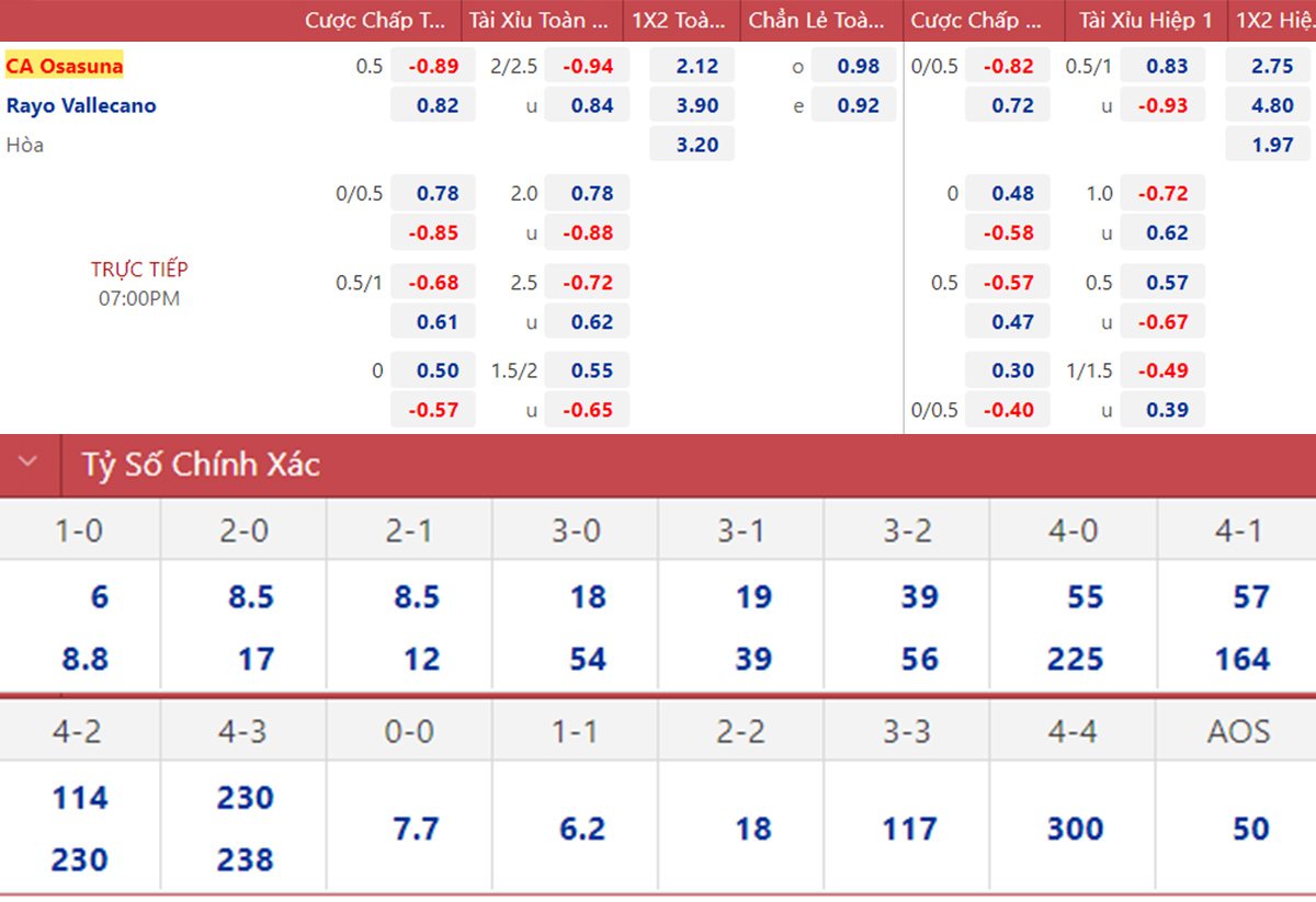 Cả hai đội đều đang cần điểm nên chúng ta có thể kỳ vọng vào một trận đấu kịch tính sắp diễn ra. Với lợi thế sân nhà, Osasuna được đánh giá nhỉnh hơn nhưng Rayo cũng có đủ phẩm chất để giành được một kết quả hòa.