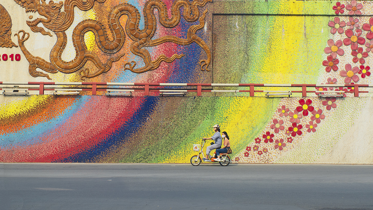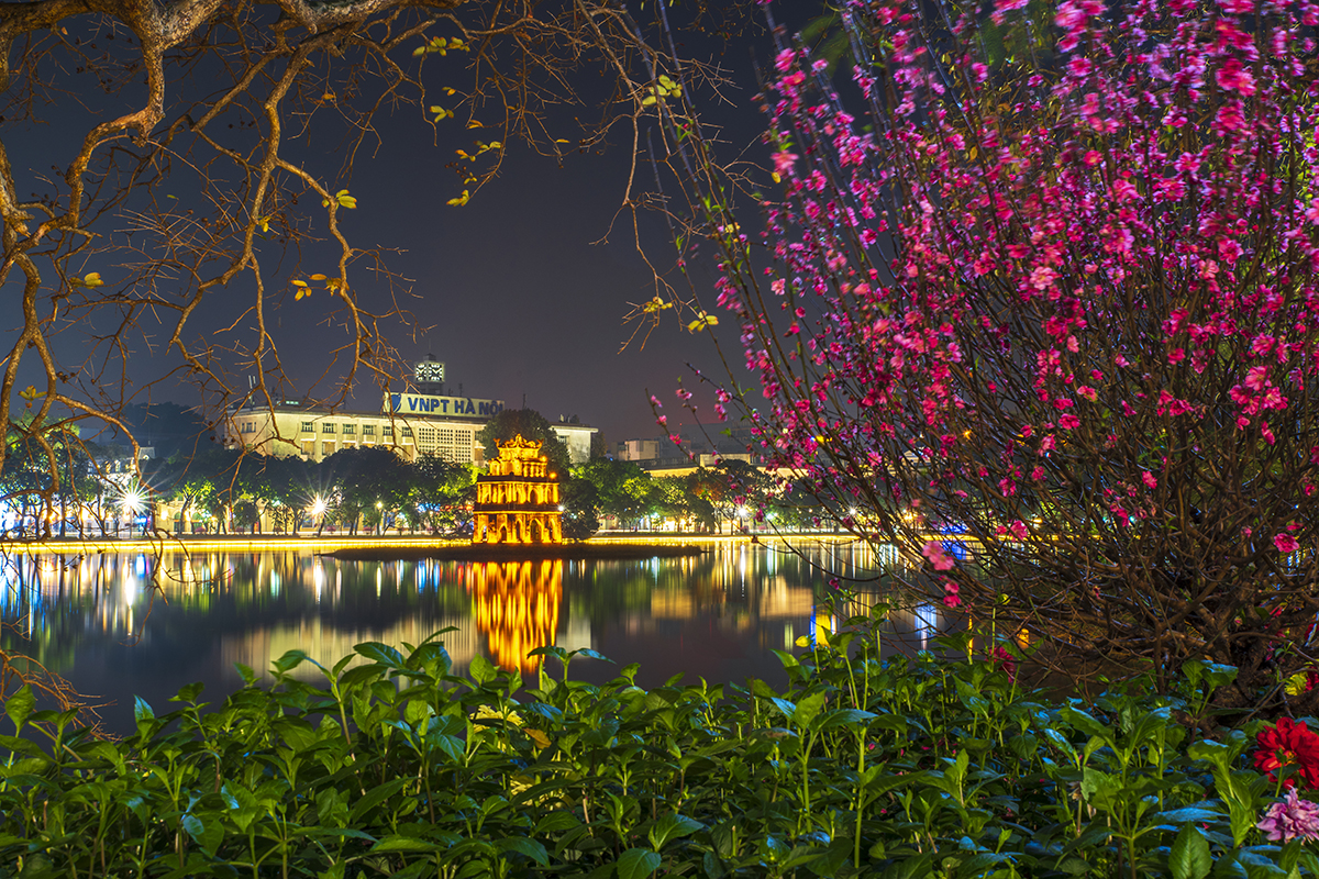 Ngoài ra, anh còn thu vào ống kính những con đường màu xanh mướt mát hay màu đỏ của hoa đào ở làng đào Nhật Tân, không khí đón Xuân bên Hồ Hoàn Kiếm...