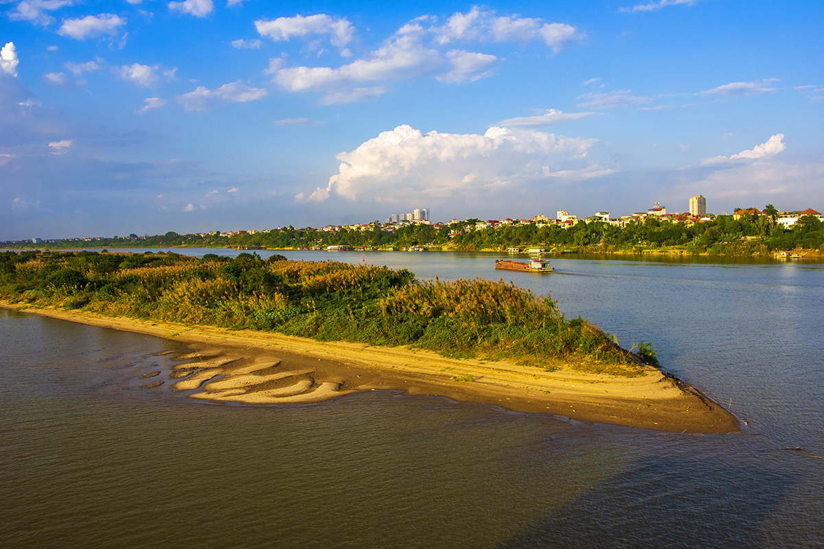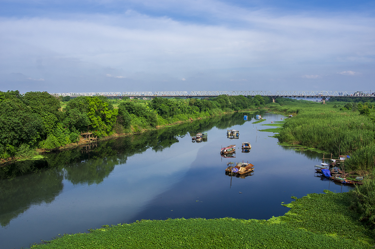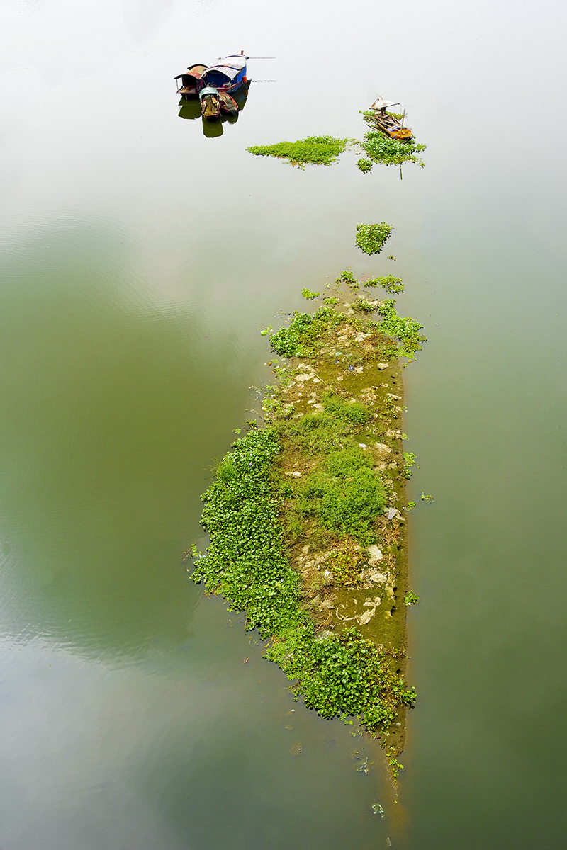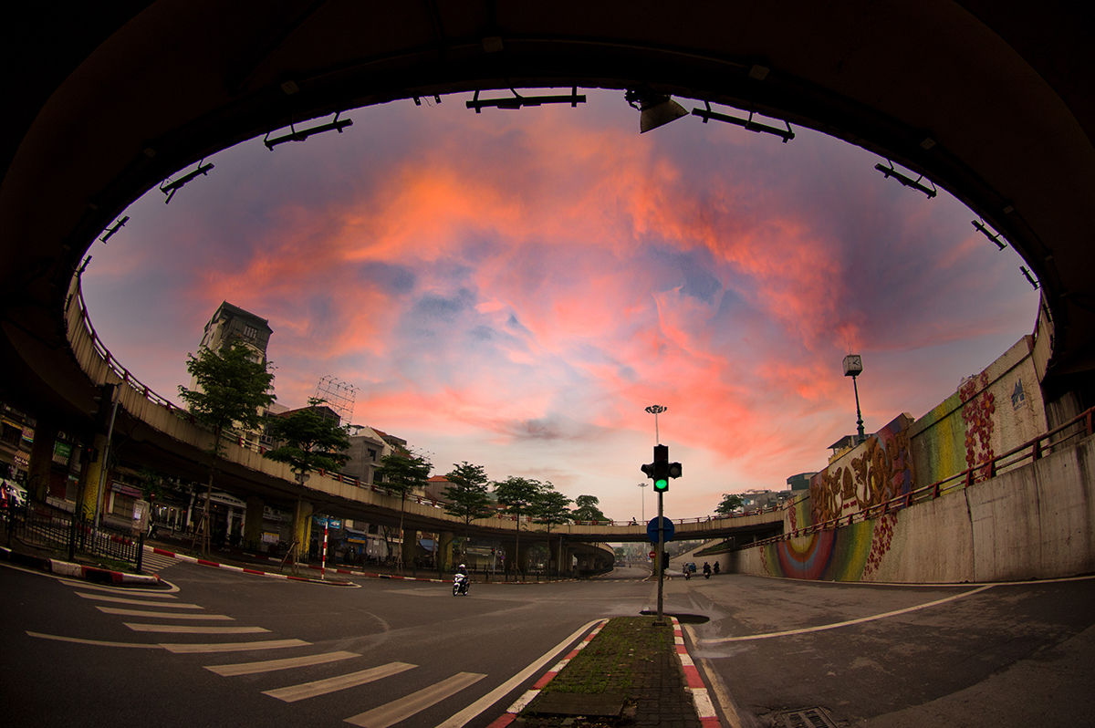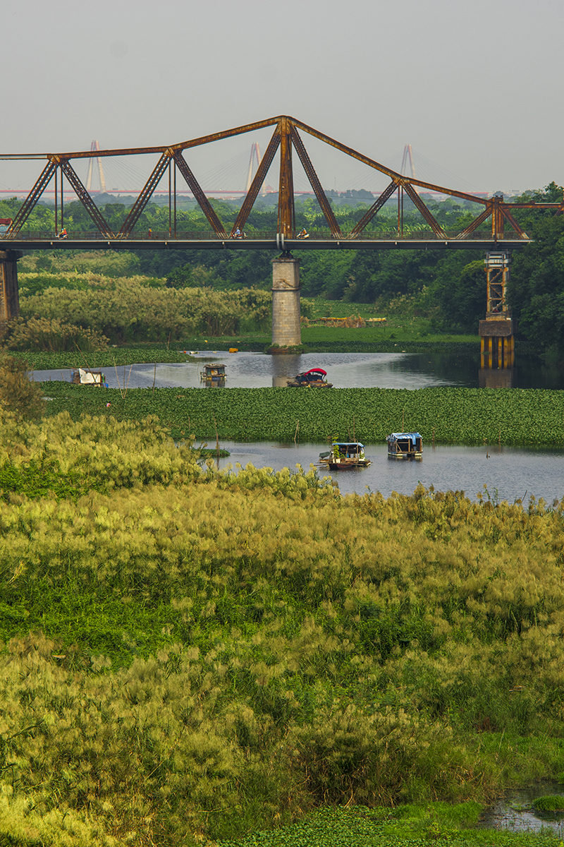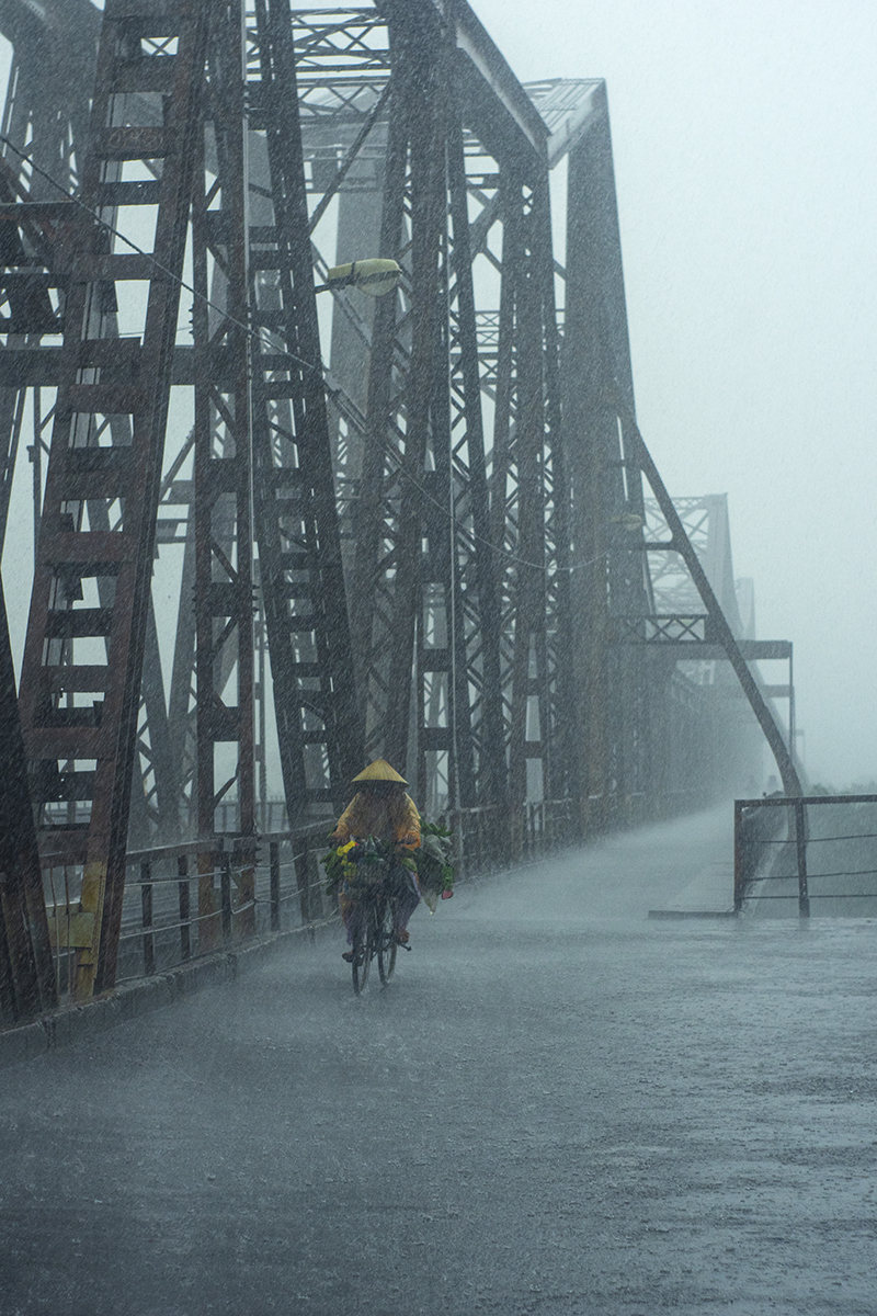Trong bộ ảnh này, Nguyễn Anh Tuấn tập trung vào chủ đề cuộc sống hàng ngày. Đó có thể là phút dừng chân dưới bùng binh cầu Chương Dương, tranh thủ thu vào ống kính một khoảng trời với mây bay đỏ rực, là một góc con đường gốm sứ, là bóng dáng của một người dáng vẻ tảo tần đang đạp xe dưới mưa trên cầu Long Biên, là bãi bồi giữa sông Hồng bình yên và thơ mộng, những bãi lau, xóm chài dưới chân cầu lịch sử.