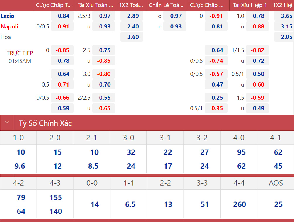 Dự đoán: Lazio 2-1 Napoli