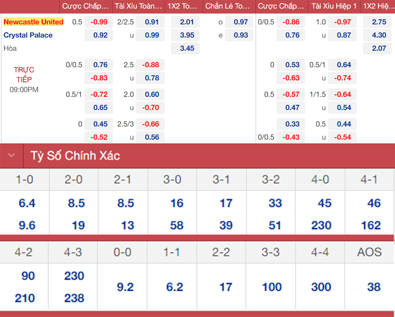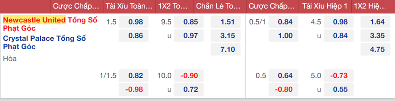 Với lợi thế sân nhà, Newcastle được đánh giá cao hơn so với Crystal Palace. Ở lần gần nhất gặp nhau, Newcastle thắng tối thiểu Crystal Palace trên sân nhà. Sẽ không có gì ngạc nhiên nếu “Chích chòe” giành 3 điểm ở trận đấu tới.