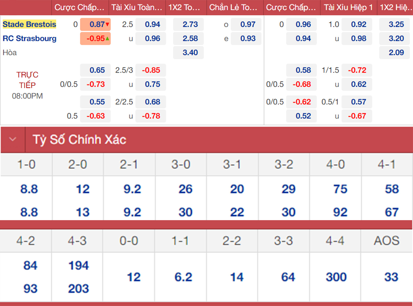Brest thắng 1 và thua 3 trong 5 trận tại Ligue 1. Trong khi đó, Strasbourg có 3 trận hòa và 2 trận thua. Với nhiệm vụ buộc phải thắng, nhiều khả năng hai đội sẽ chơi cống hiến.
