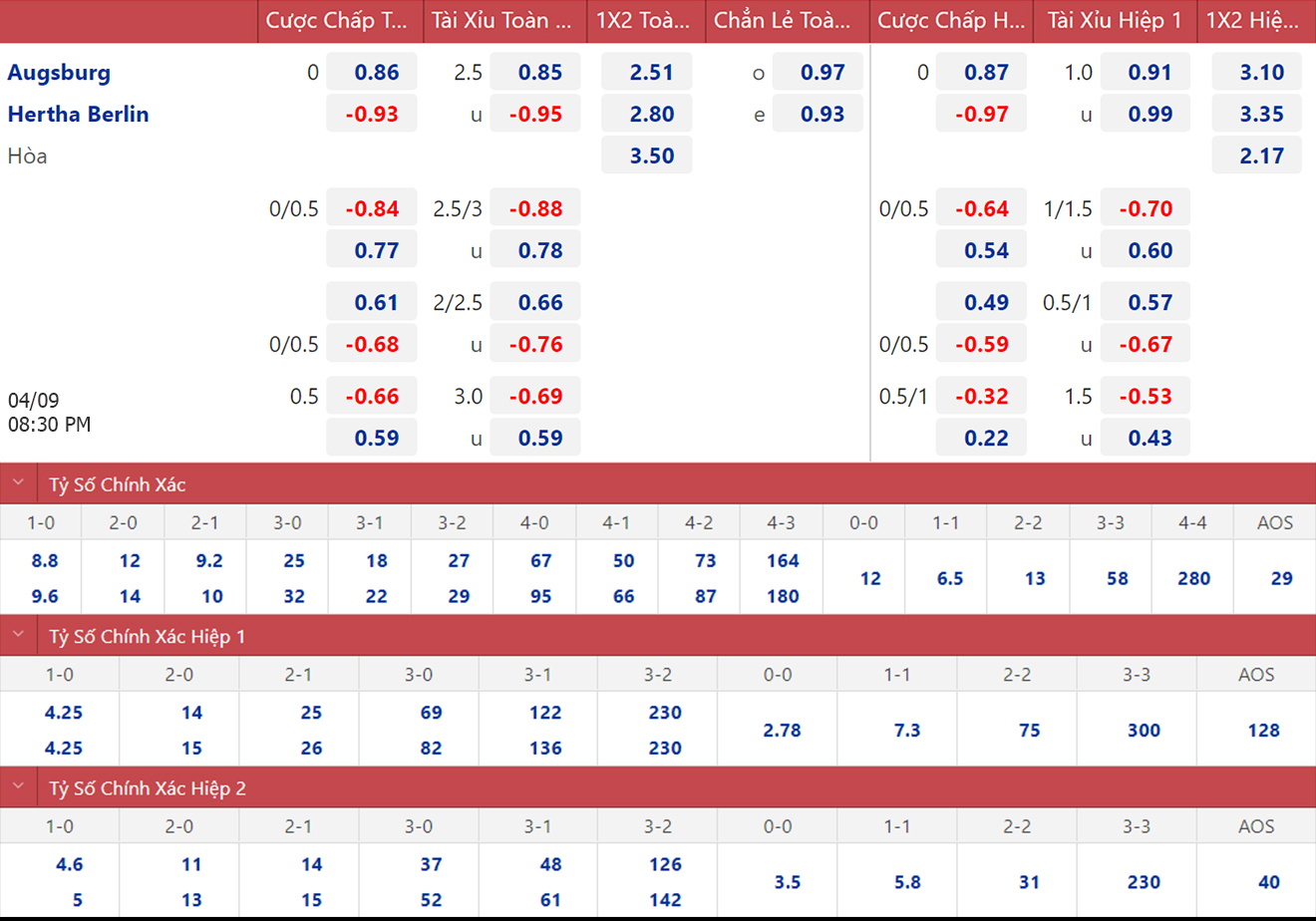 Soi kèo nhà cái Augsburg vs Hertha Berlin. Nhận định bóng đá Bundesliga (20h30, 4/9). Dự đoán bóng đá Augsburg vs Hertha Berlin. Tỷ lệ kèo bóng đá Đức.