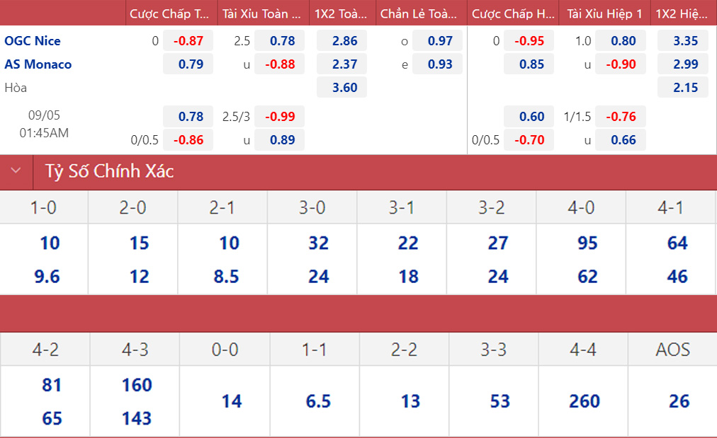 * 01h45, 5/9: Nice vs Monaco