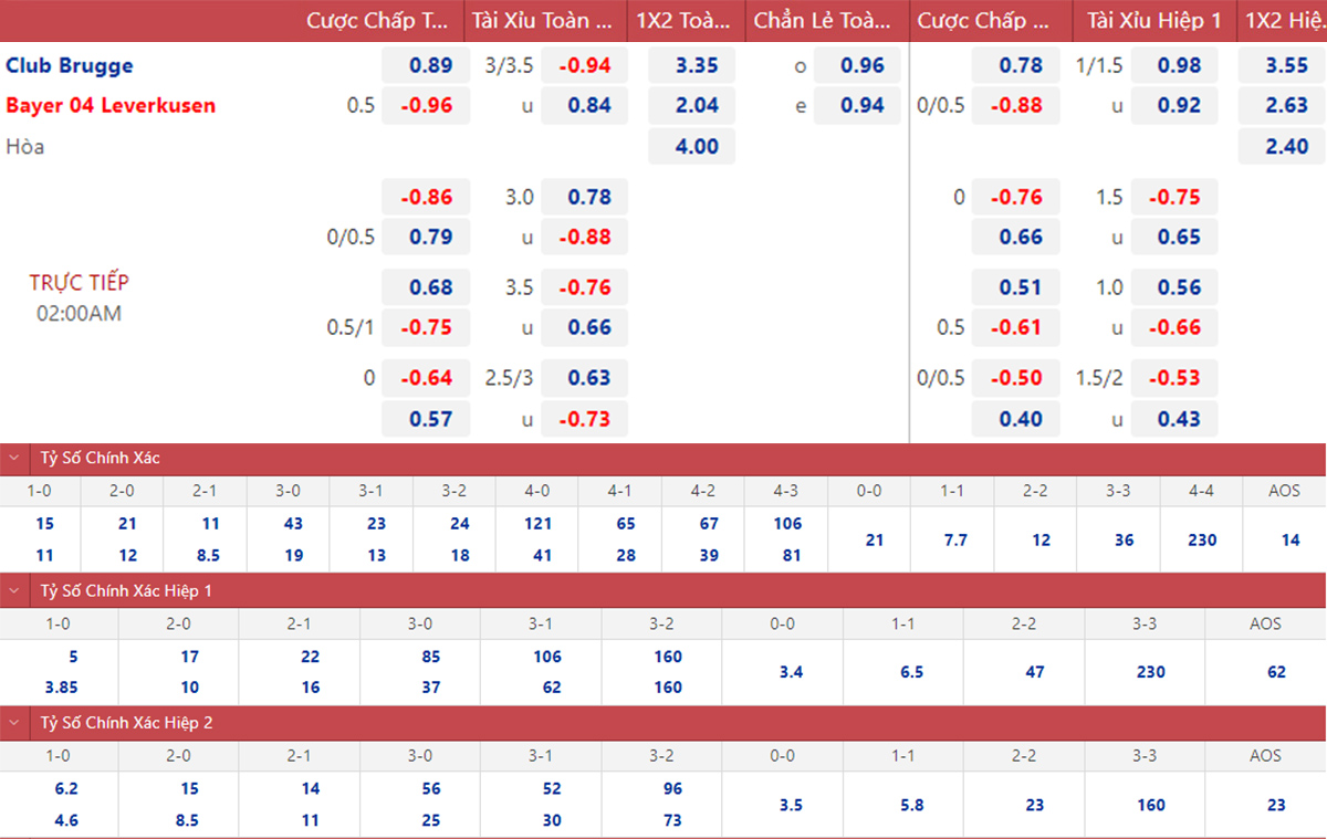 Về phong độ, Club Brugge cũng đang làm tốt hơn khi đang có chuỗi 5 trận bất bại. Bên kia chiến tuyến, Leverkusen đã thua 4/5 trận gần đây nhất của họ.