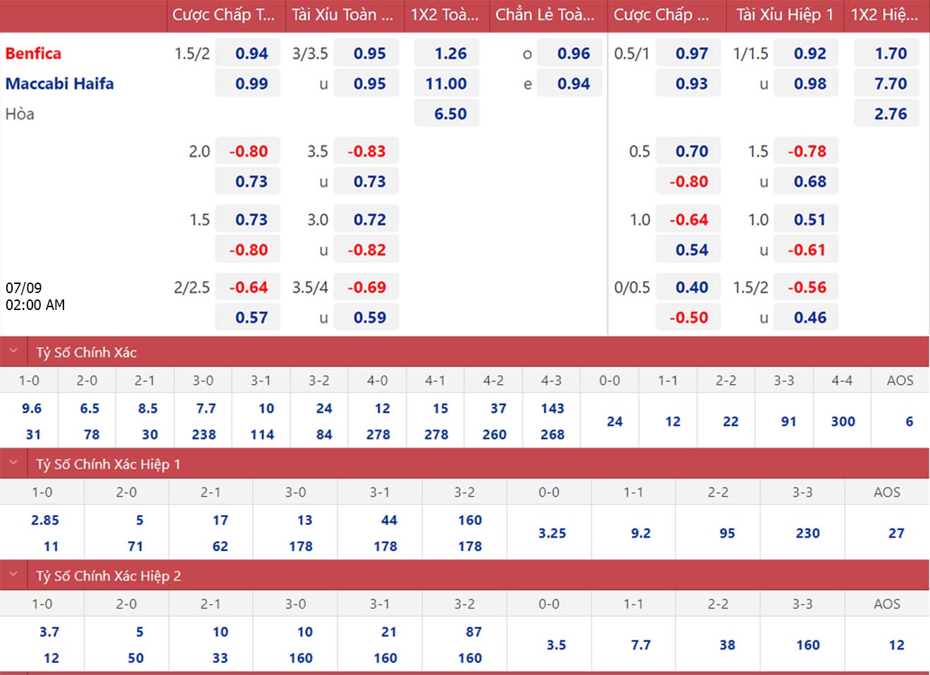 Soi kèo nhà cái Benfica vs Maccabi Haifa. Nhận định, dự đoán bóng đá cúp C1 Champions League (02h00, 7/9). Dự đoán bóng đá Benfica vs Maccabi Haifa. Tỷ lệ kèo cúp C1.