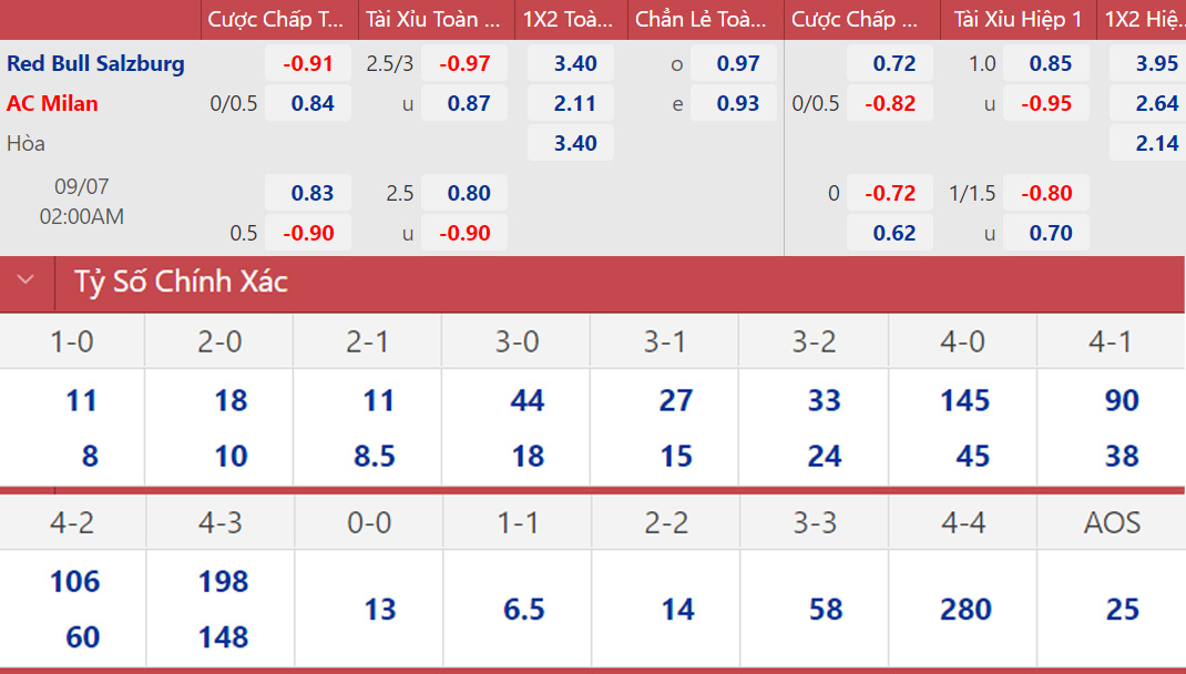 Soi kèo nhà cái Salzburg vs Milan. Nhận định, dự đoán bóng đá Cúp C1 (02h00, 7/9). Dự đoán bóng đá Salzburg vs Milan. Tỷ lệ kèo Cúp C1.