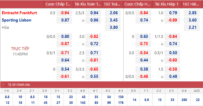 Trong khi đó, Sporting Lisbon lại có phong độ không ổn định. Họ vừa thắng Estoril 2-0 nhưng trước đó từng thua 0-2 trước tân binh Chaves ngay trên sân nhà. Vì thế, chuyến làm khách trên sân của Frankfurt hứa hẹn sẽ đầy vất vả.