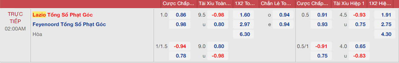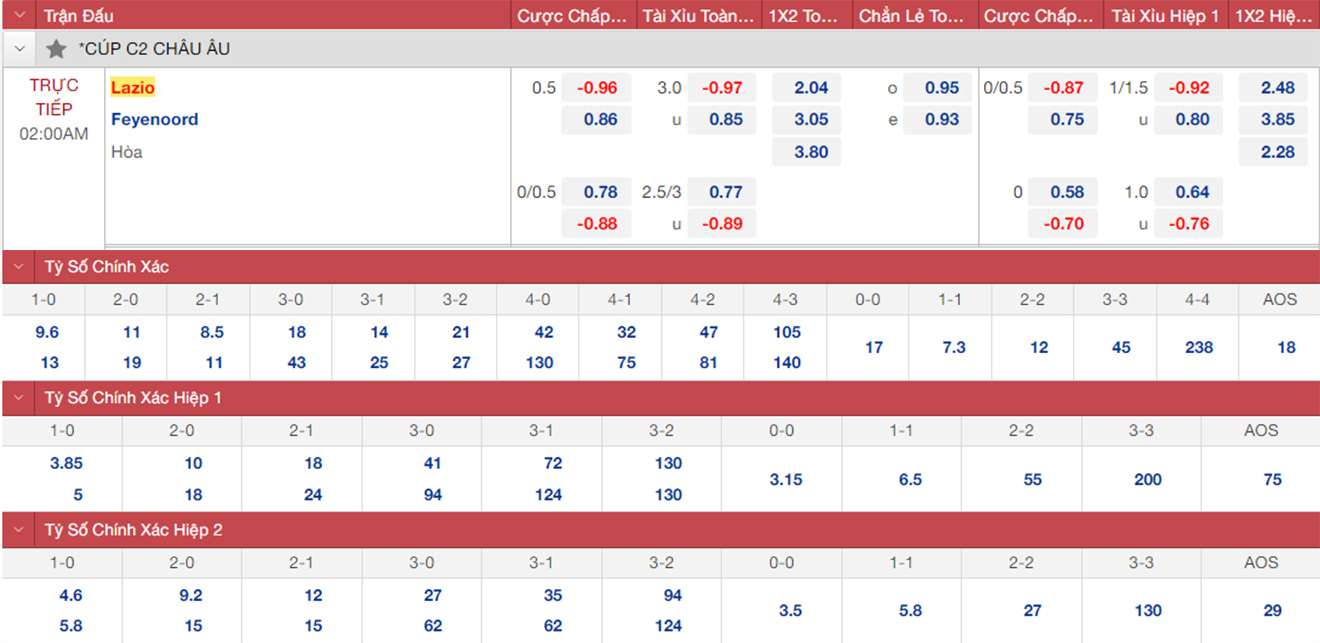 Lazio nhiều khả năng thắng Feyenoord. Lazio được đánh giá cao hơn nhiều so với Feyenoord, đặc biệt khi họ đá trên sân nhà.