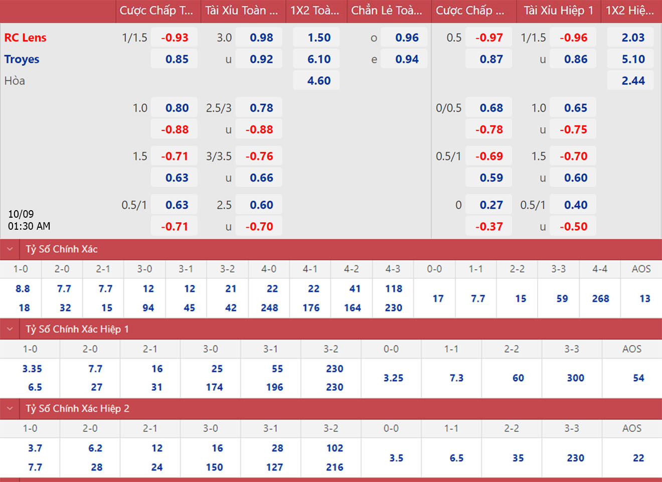 * 02h00, 10/9: Troyes vs Lens