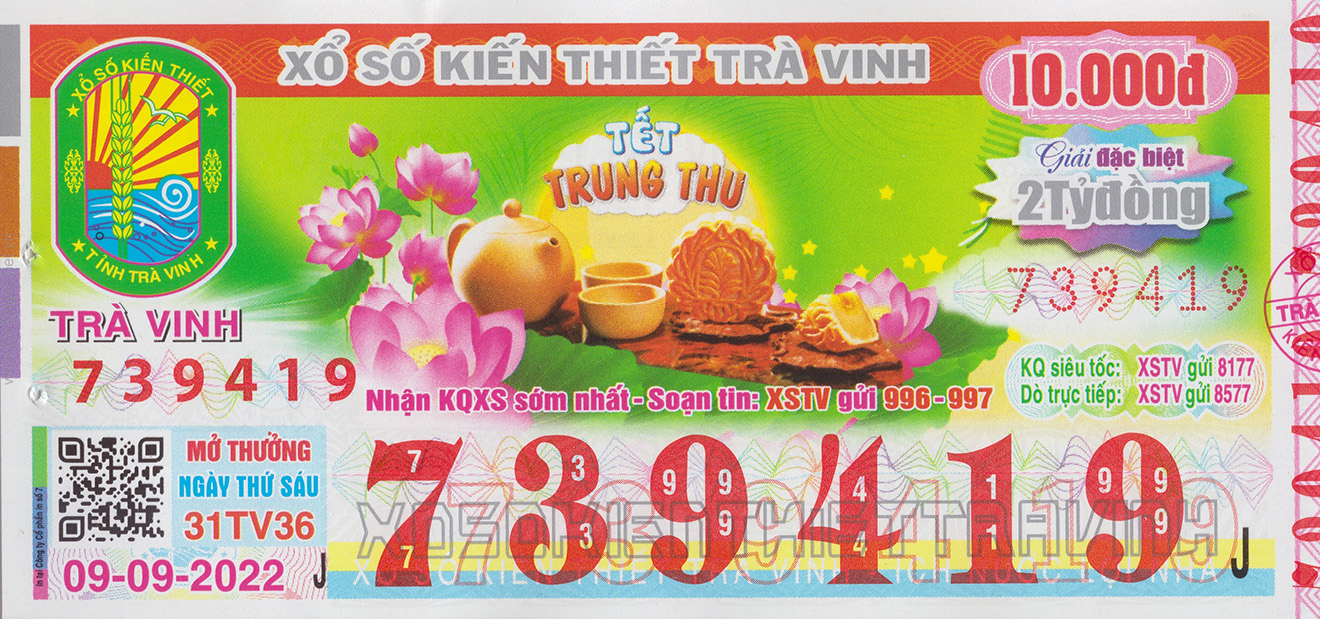 Mẫu vé số Trà Vinh (XSTV) ngày 9/9/2022