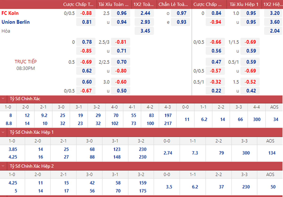 Các chuyên gia dự đoán đây sẽ là một cuộc so tài chặt chẽ. Cả Cologne lẫn Union Berlin đều sẽ chơi ở cúp châu Âu vào tuần sau. Vì vậy, họ có thể đá cầm chừng để giữ sức.