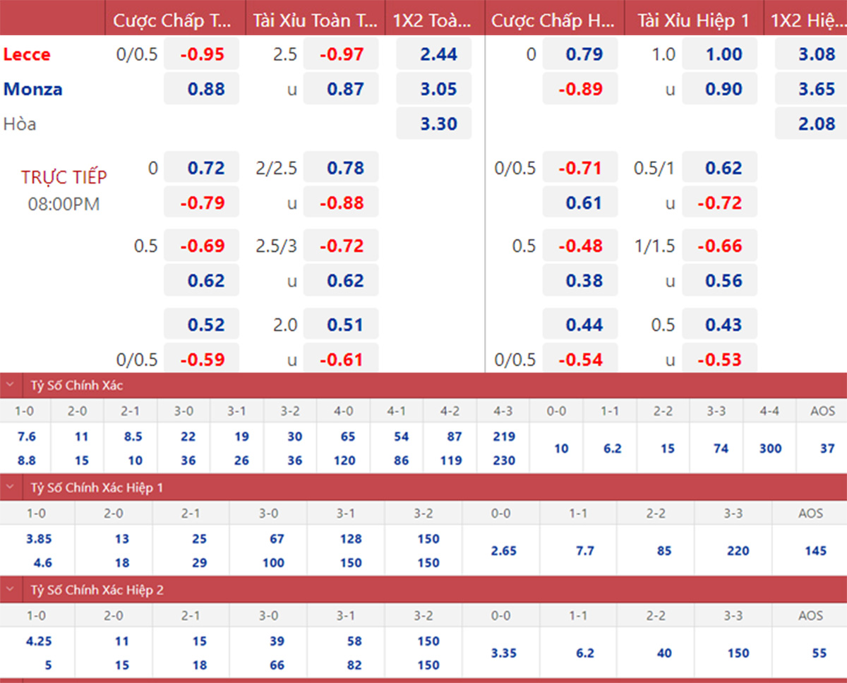 * 20h00, 11/9: Lecce vs Monza