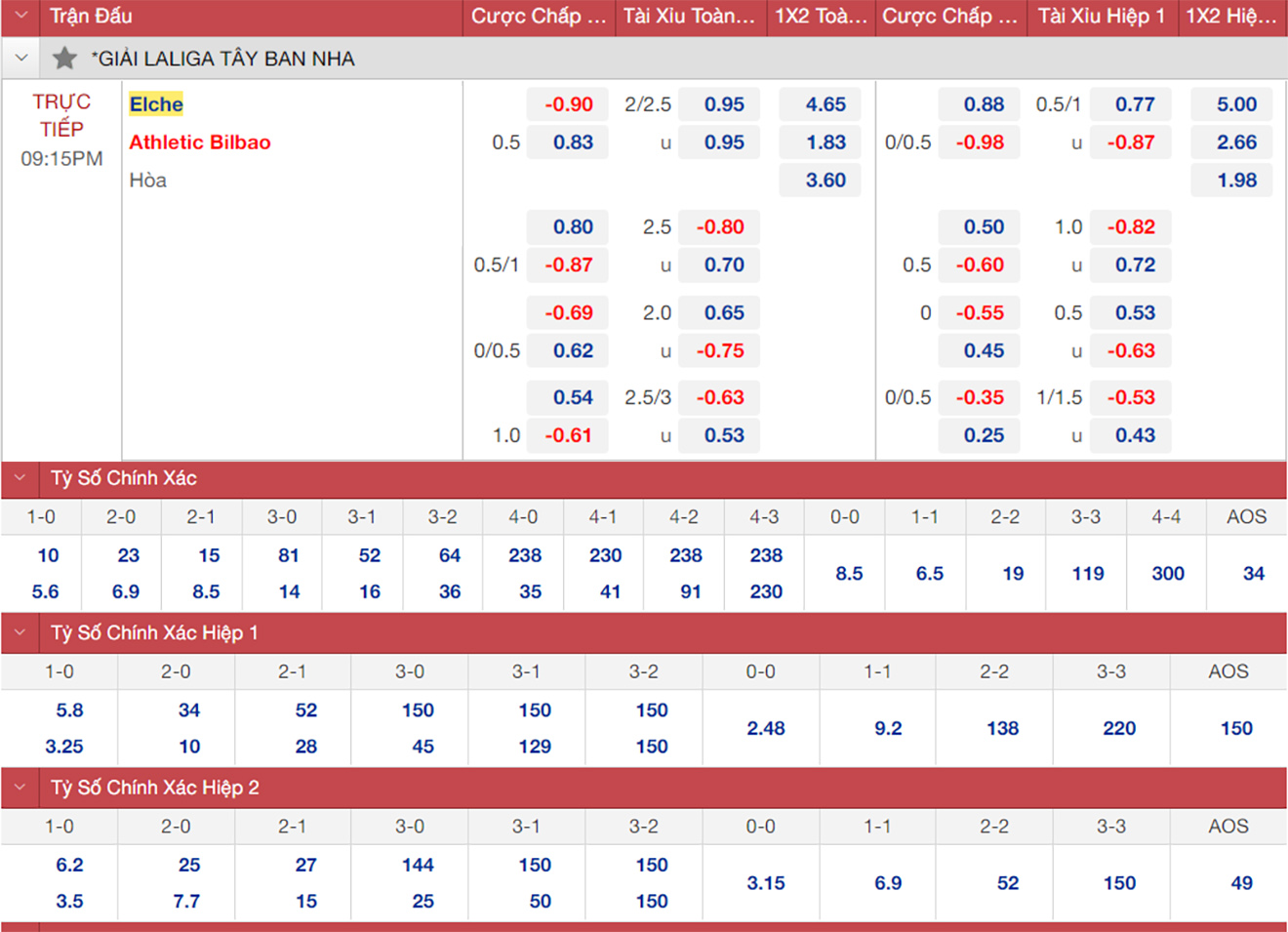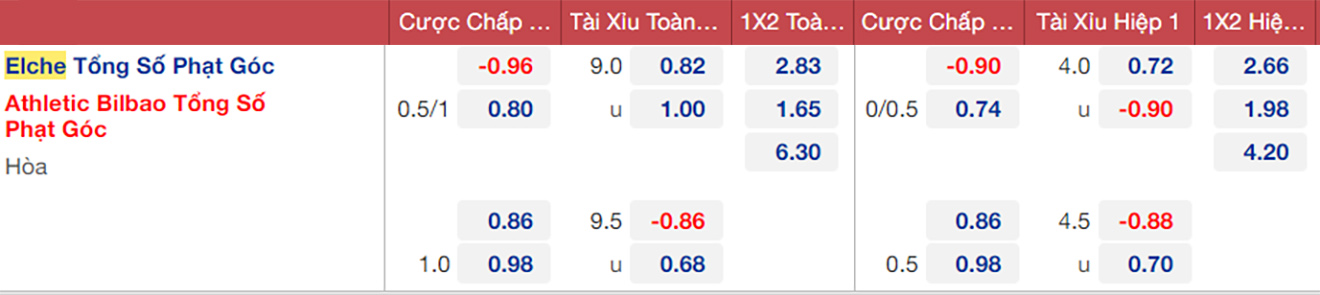 Elche thua 3 trong 4 trận ở mùa giải này và chưa thắng trận nào. Khởi đầu tệ hại đó khiến họ đứng trong nhóm “cầm đèn đỏ”. Ở lần gần nhất gặp nhau, Athletic Bilbao thắng 2-1 trước Elche. Với phong độ vượt trội, đội bóng xứ Basque được dự đoán sẽ tiếp tục gieo sầu cho Elche.