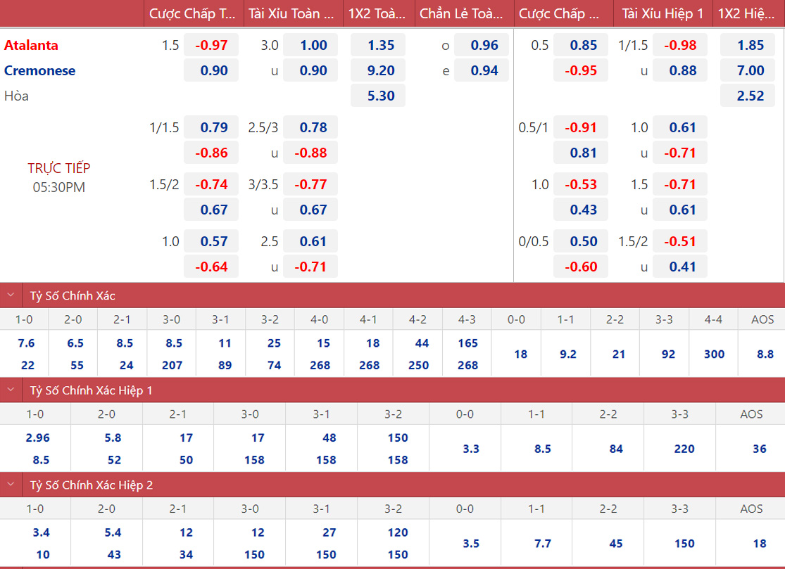 Atalanta dù đã mất đi nhiều cầu thủ quan trọng ở các mùa giải gần đây nhưng họ vẫn duy trì được lối chơi kiểm soát đặc trưng. Chiến thắng với nhiều bàn thắng vào lưới Cremonese là điều được dự đoán nhiều vào cuối tuần này dành cho Atalanta.