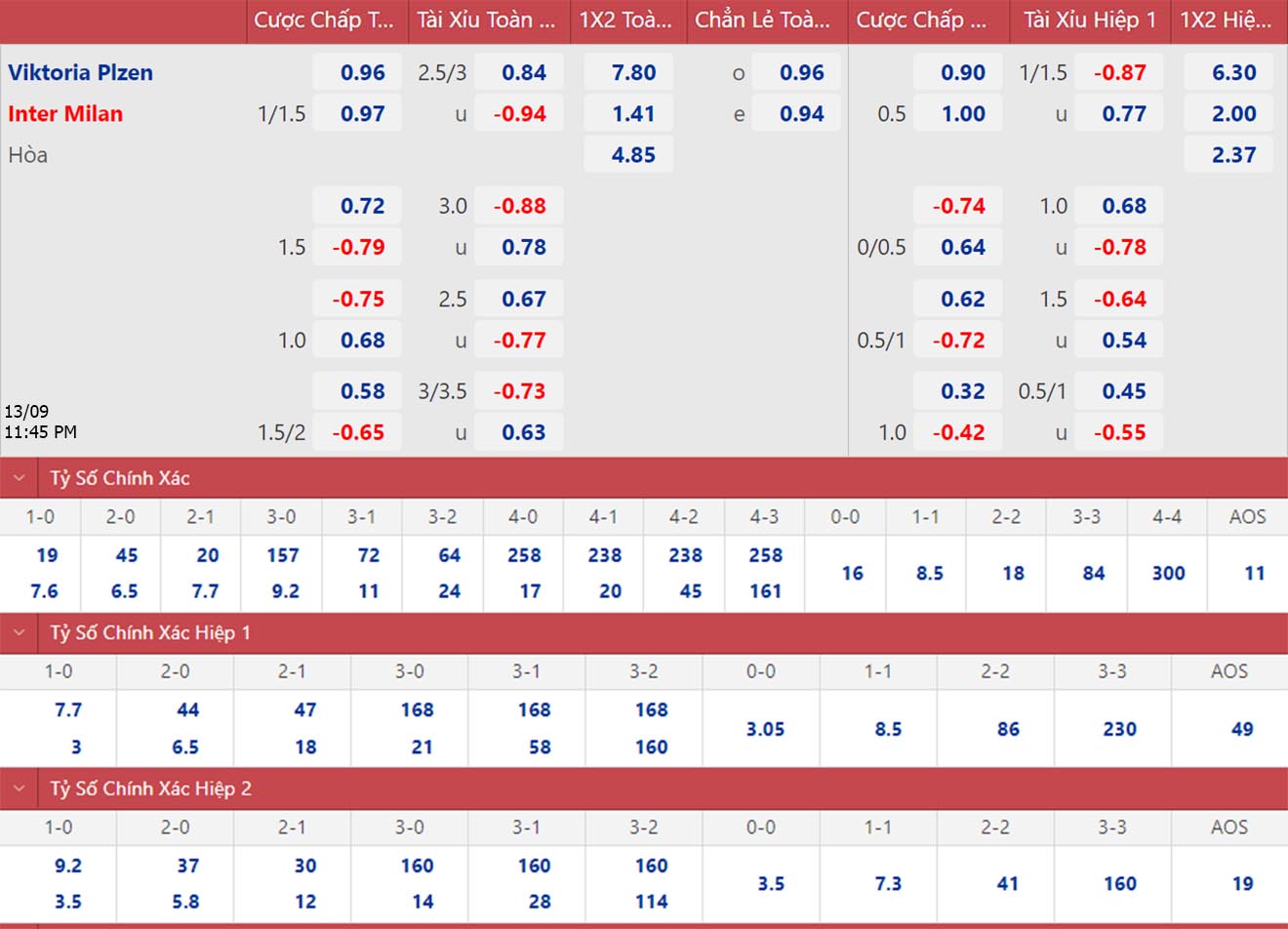 Soi kèo nhà cái Viktoria Plzen vs Inter Milan. Nhận định, dự đoán bóng đá Cúp C1 (23h45, 13/9). Dự đoán bóng đá Plzen vs Inter Milan. Tỷ lệ kèo Champions League.