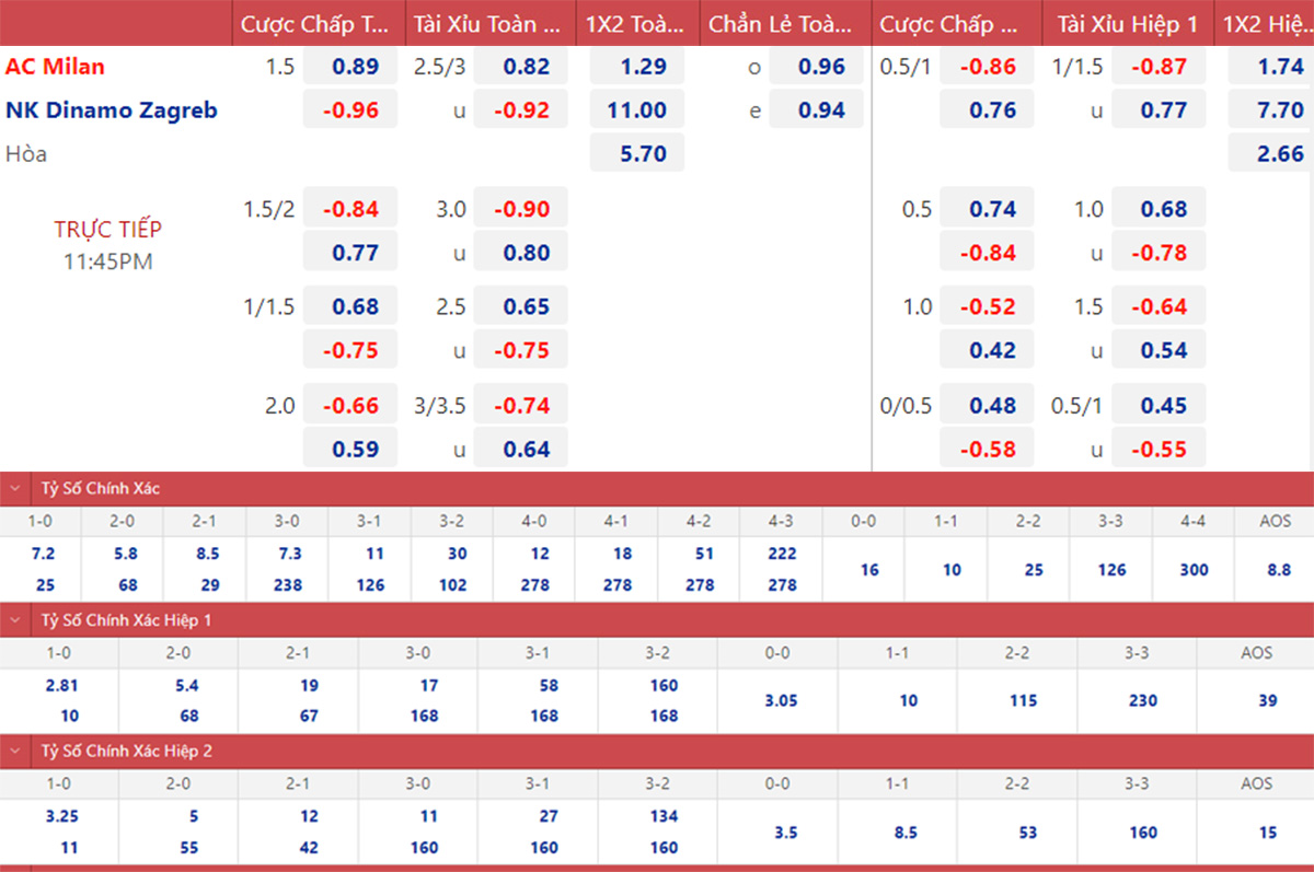 Soi kèo nhà cái Milan vs Dinamo Zagreb. Nhận định, dự đoán bóng đá Cúp C1 (23h45, 14/9). Dự đoán bóng đá Milan vs Dinamo Zagreb. Tỷ lệ kèo Champions League.