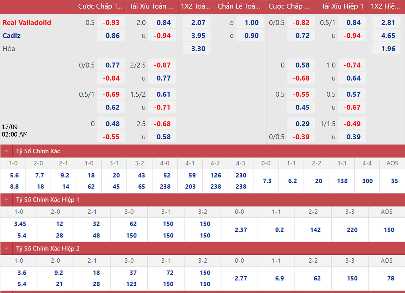 * 02h00, 17/9: Valladolid vs Cadiz (ON Football)