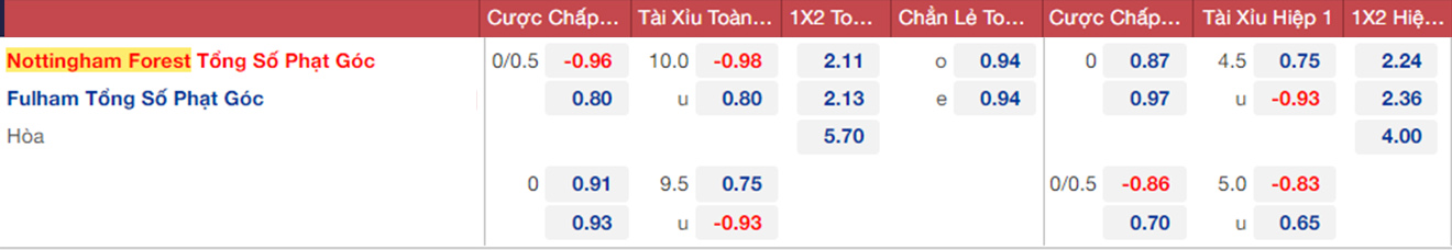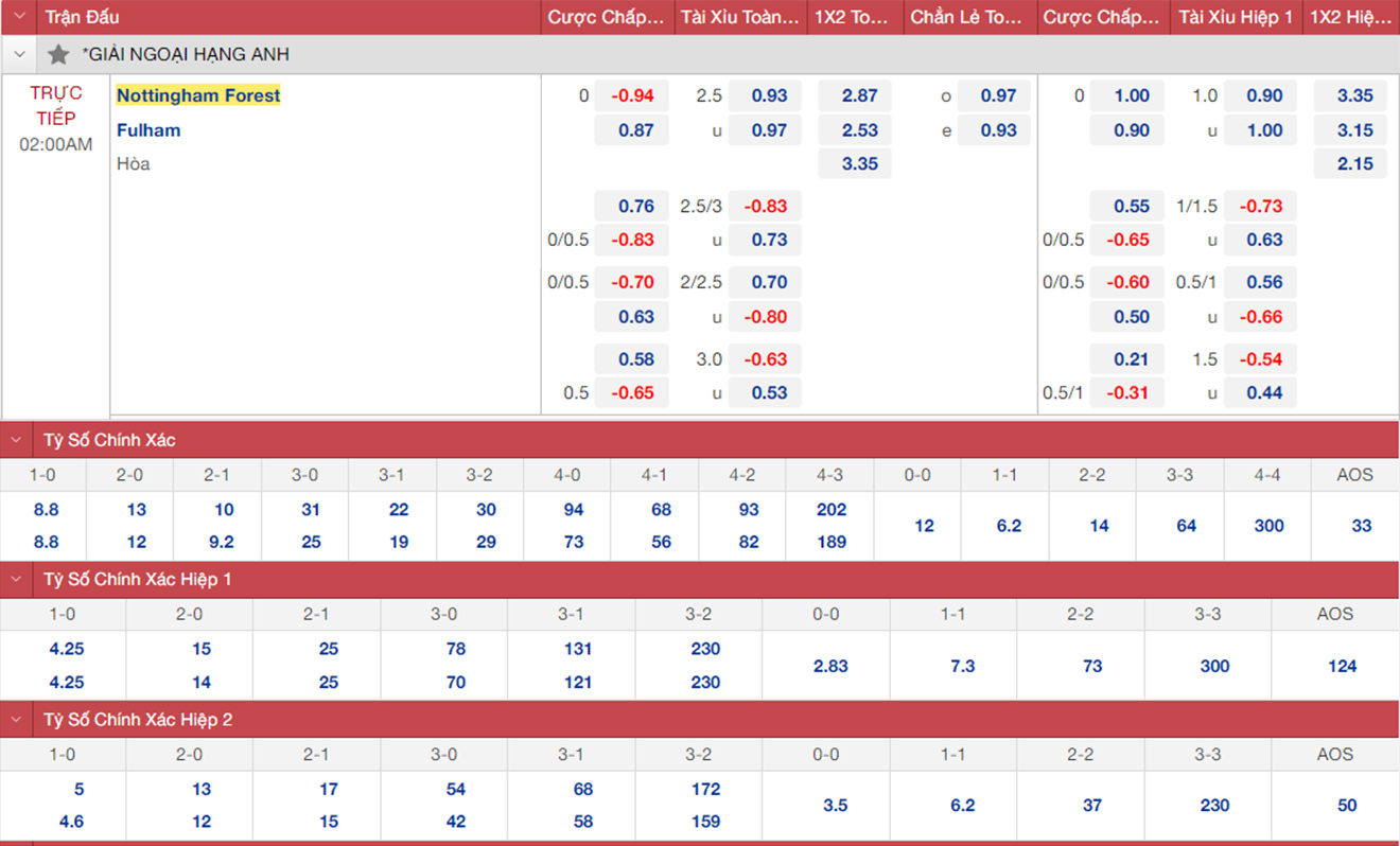 Ba trận gần nhất của Fulham có tổng tỉ số vượt mốc 2,5 bàn. Ở 3 trong 5 trận gần nhất của Nottingham, tổng tỉ số vượt mốc 2,5 bàn. Do vậy trận đấu tới sẽ có nhiều bàn thắng.