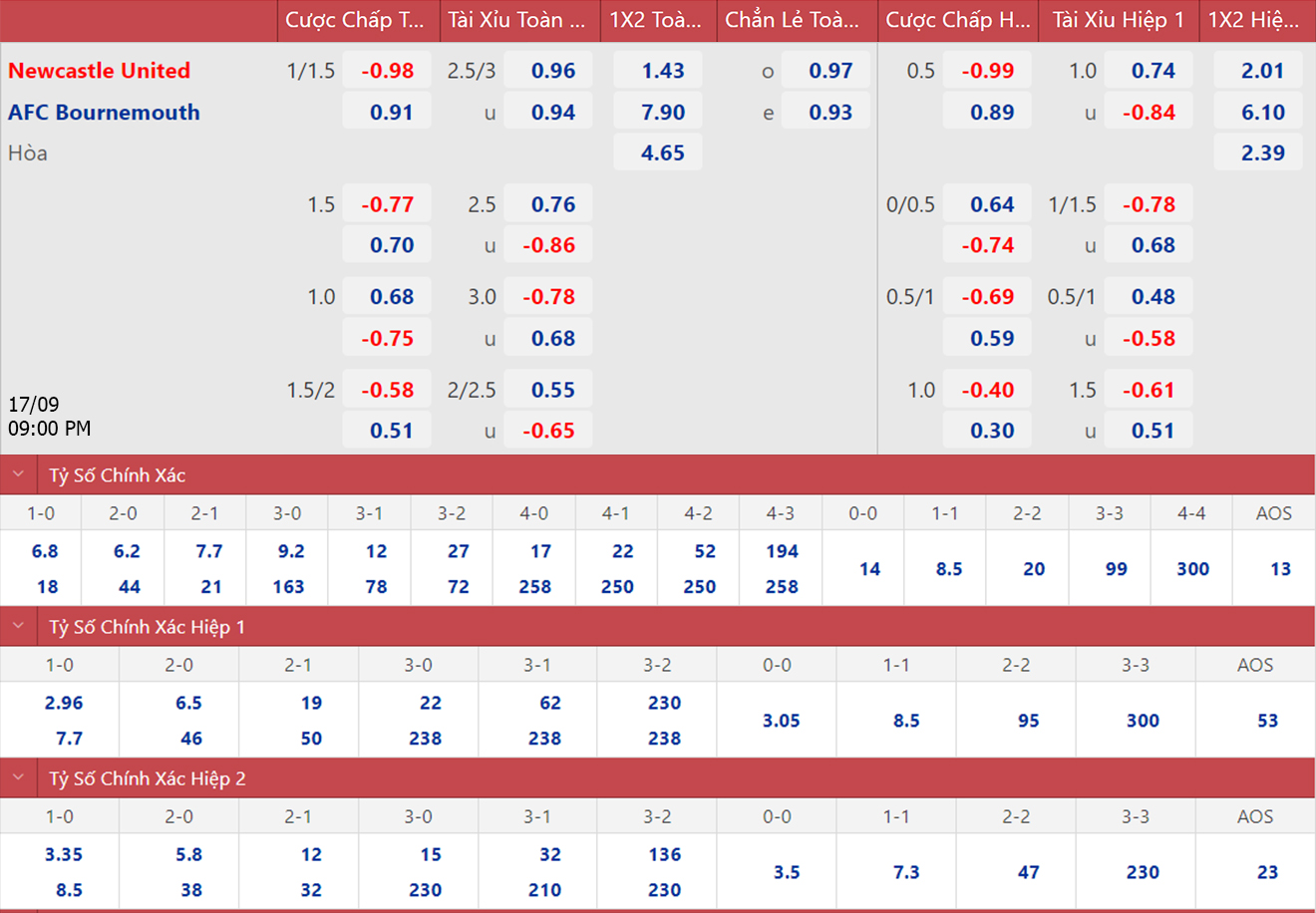 Soi kèo nhà cái Newcastle vs Bournemouth. Nhận định bóng đá Ngoại hạng Anh (21h00, 17/9). Dự đoán bóng đá Newcastle vs Bournemouth. Tỷ lệ kèo Ngoại hạng Anh.