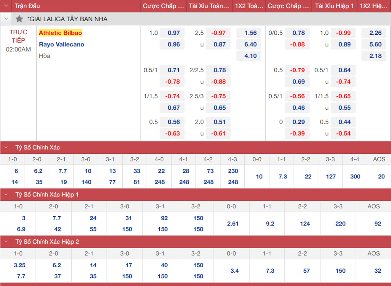Athletic Bilbao nhiều khả năng sẽ giành thắng lợi trước Rayo Vallecano. Đội bóng xứ Basque khởi đầu mùa giải này với 3 trận thắng, 1 trận hoà và 1 trận thua tại La Liga. Ở vòng đấu trước, Bilbao thắng 4-1 trên sân của Elche.