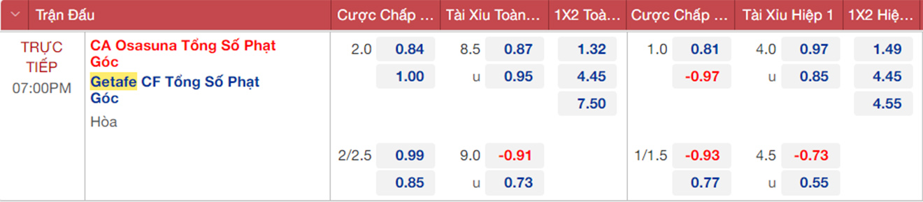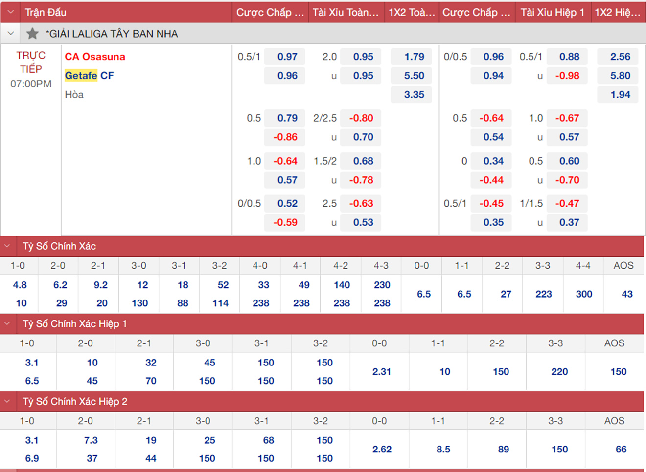 Sân nhà là điểm tựa với Osasuna. Họ đang có chuỗi 3 trận toàn thắng khi đá trên sân nhà tại La Liga. Với hàng thủ yếu kém và phong độ tệ hại, rất có thể Getafe sẽ thua Osasuna ở trận đấu tới.