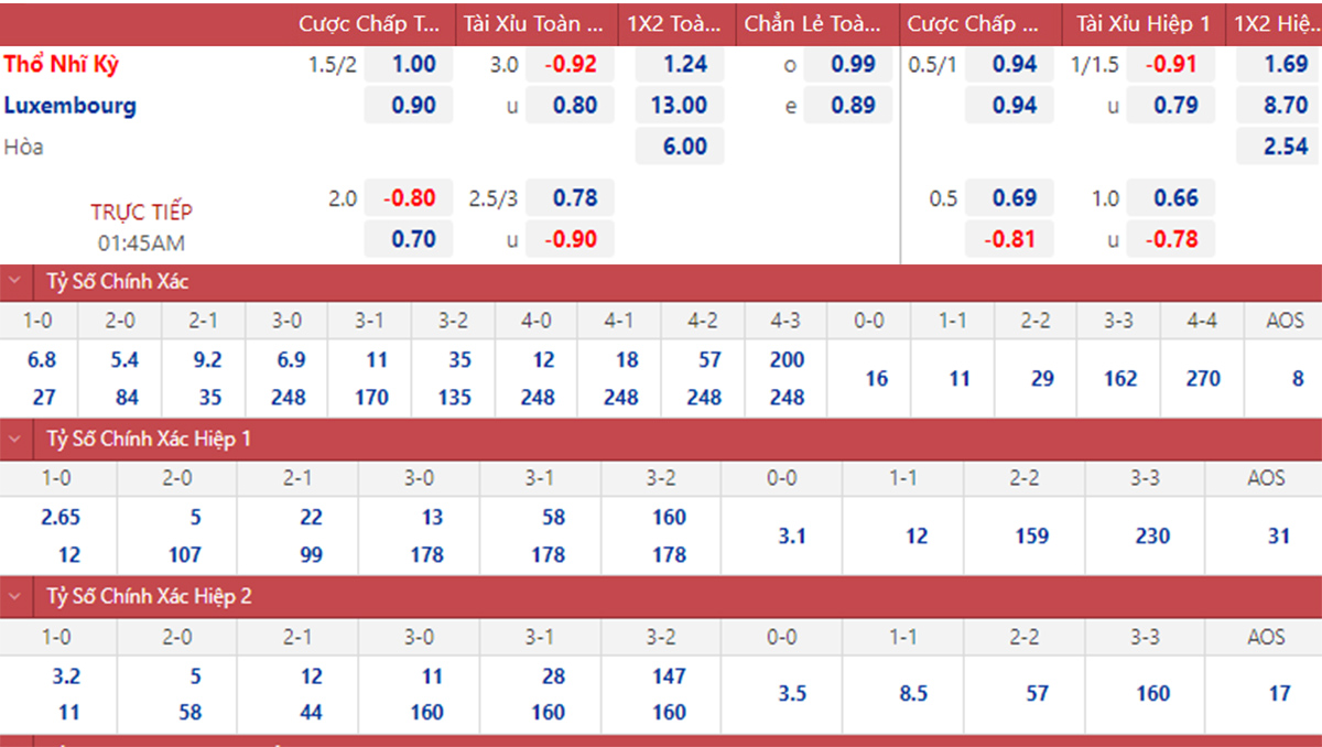 Soi kèo, nhận định Thổ Nhĩ Kỳ vs Luxembourg