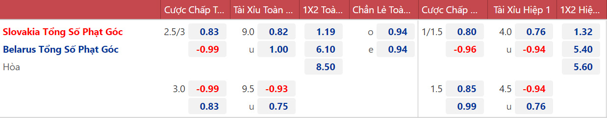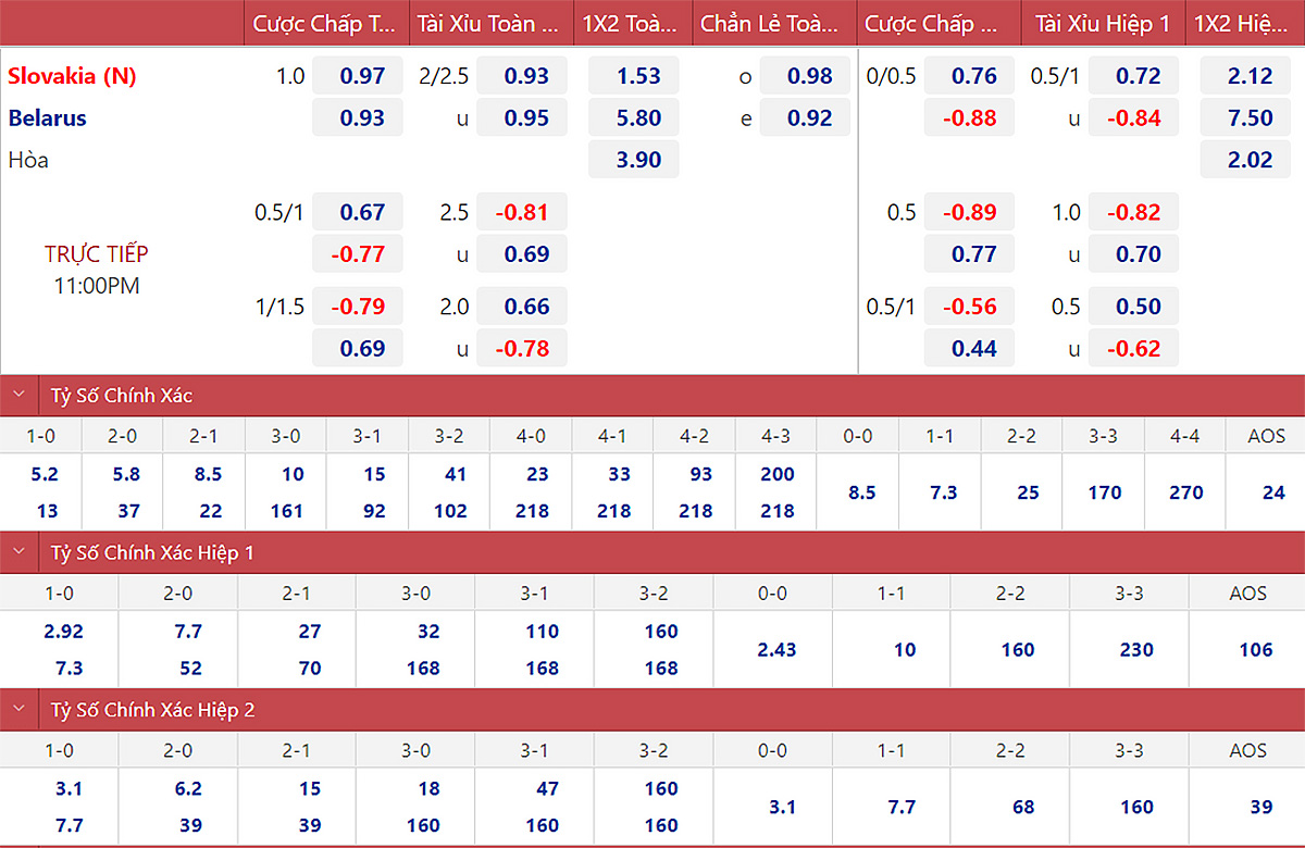 Tuy nhiên, nhà cái ra tỷ lệ Slovakia chấp 1 hòa đối với Belarus có thể coi là một tỷ lệ chấp cao. Lựa chọn Slovakia vẫn là phương án an toàn. Ngoài ra, trận đấu cũng khó có thể có nhiều bàn thắng vì chất lượng hàng thủ của Slovakia tốt hơn hàng công của Belarus.