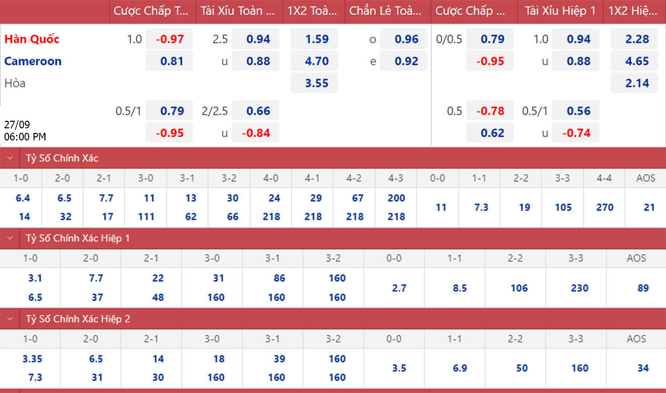 Soi kèo, nhận định Hàn Quốc vs Cameroon