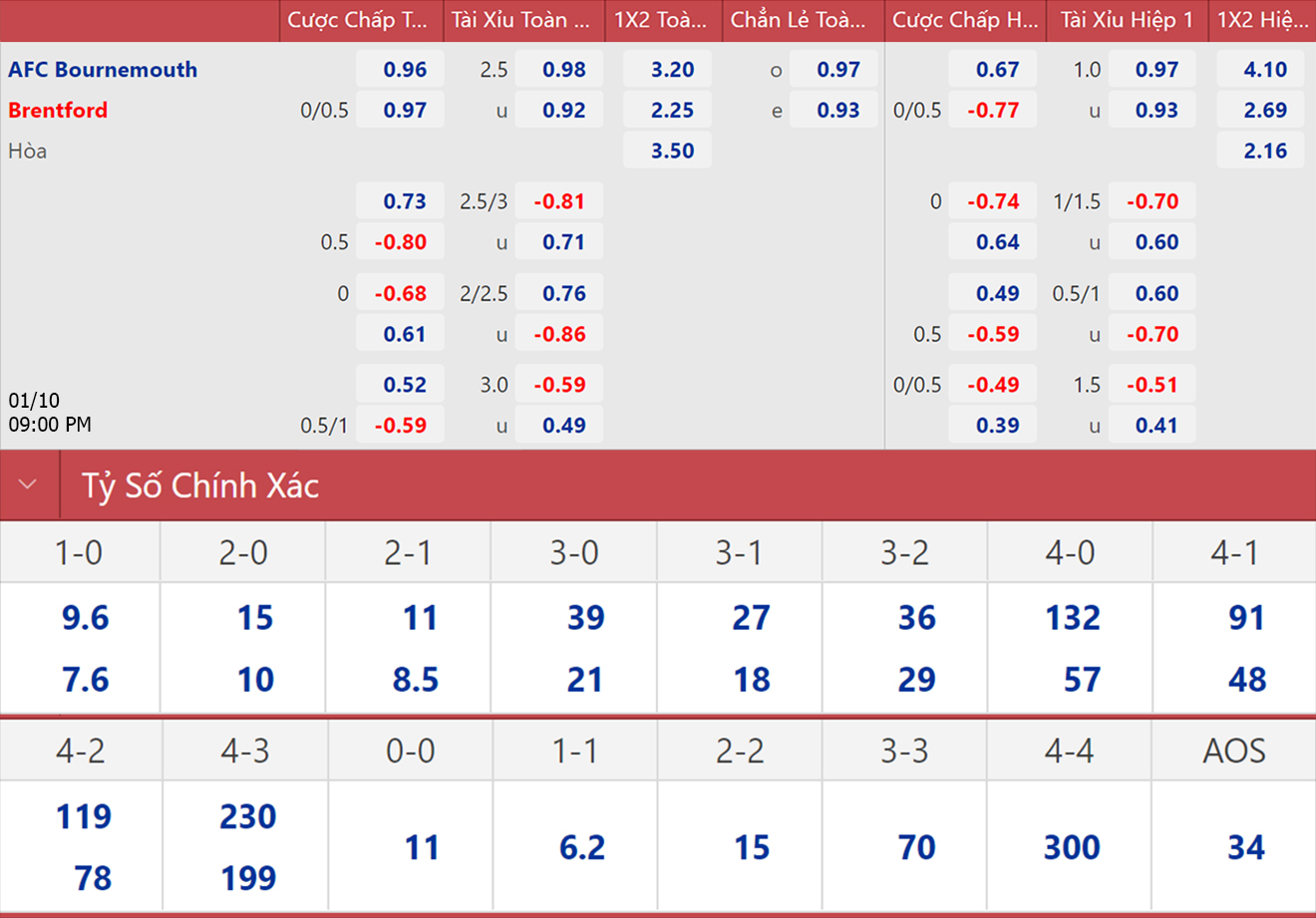 Trên sân nhà mùa này, thành tích của Bournemouth là 1 thắng, 1 hòa, 1 thua. Trong khi đó, Brentford vẫn đang tìm kiếm chiến thắng sân khách đầu tiên sau 3 trận liên tiếp chỉ hòa (2) và thua. Về phong độ, Brentford nhỉnh hơn chút khi thắng 2, hòa 2, thua 2 ở 6 trận gần nhất, còn Bournemouth thắng 1, hòa 2, thua3.
