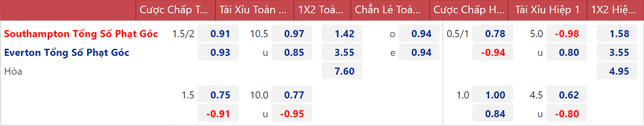 Về phong độ, hai đội khá tương đồng. Trong khi Southamoton thắng 2, hòa 1 và thua 3 ở 6 vòng gần nhất thì Everton thắng 1, hòa 4, thua 1. Rất có thể cả hai sẽ chia điểm ở trận này.