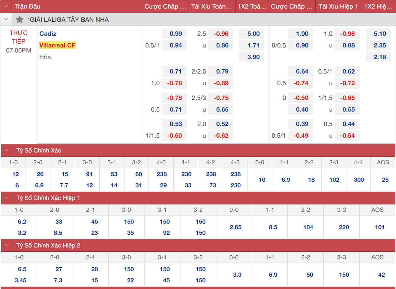Ở trận đấu tới, Cadiz được đá trên sân nhà. Tuy nhiên họ đang có chuỗi 5 trận thua trên sân nhà. Bên phía Villarreal, họ mới thua 1 trận trong 5 trận gần nhất đá sân khách. Trước Cadiz đang trượt dốc, Vilalrreal được dự đoán sẽ giành thắng lợi dễ dàng.
