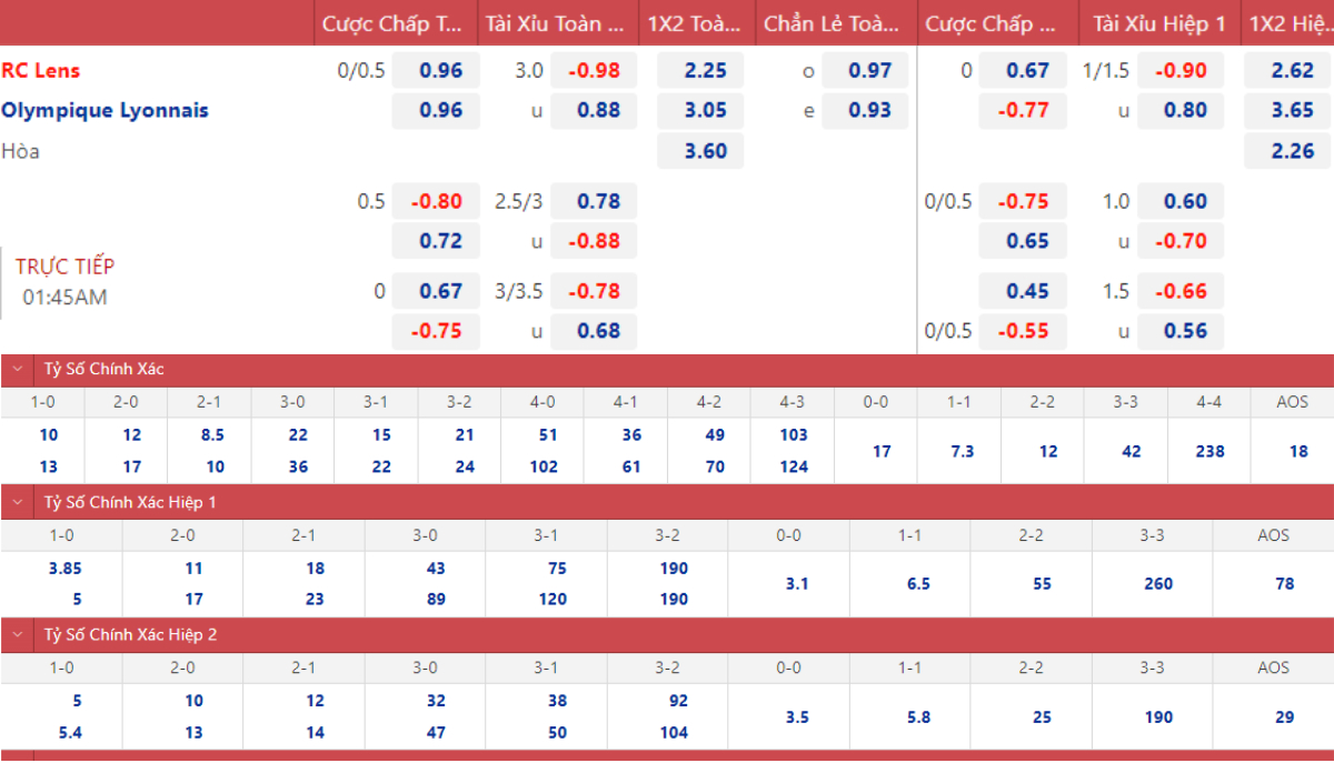 Đó sẽ là cơ hội để Lyon tự tin làm khách của Lens. Với chiến tích đối đầu tốt, họ kì vọng sẽ có ít nhất 1 điểm từ trận đấu này.