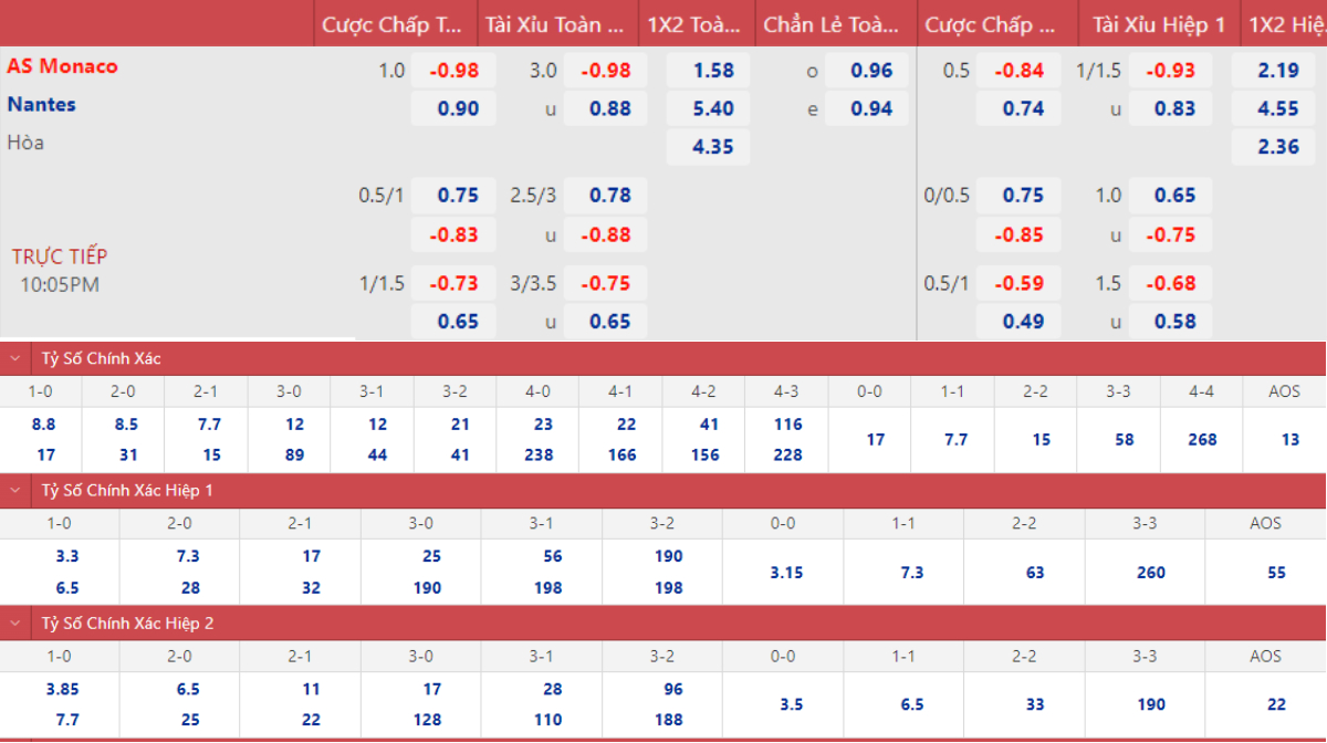 Trong 4 lần đối đầu gần nhất, Monaco thắng 2, hòa 2 trong khi Nantes không thắng nổi 1 trận nào. Đó sẽ là cơ sở để Monaco tin vào 1 chiến thắng nữa trong trận đấu này.