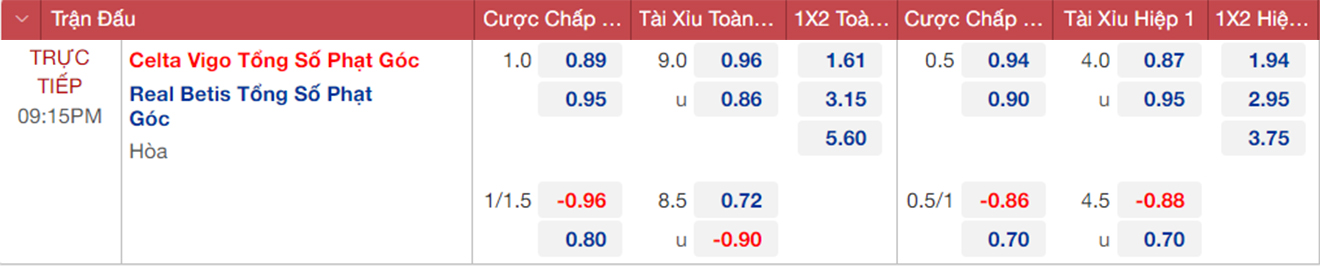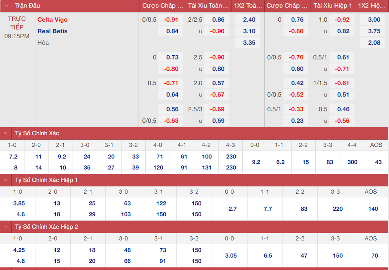 Real Betis nhiều khả năng thắng Celta Vigo. Real Betis đang xếp thứ 4 trên BXH La Liga với 15 điểm, kém 3 điểm so với đội đầu bảng là Real Madrid. Real Betis thắng 4 trong 5 trận gần nhất tại La Liga. Trận còn lại, họ để thua 1-2 trước nhà ĐKVĐ Real Madrid.