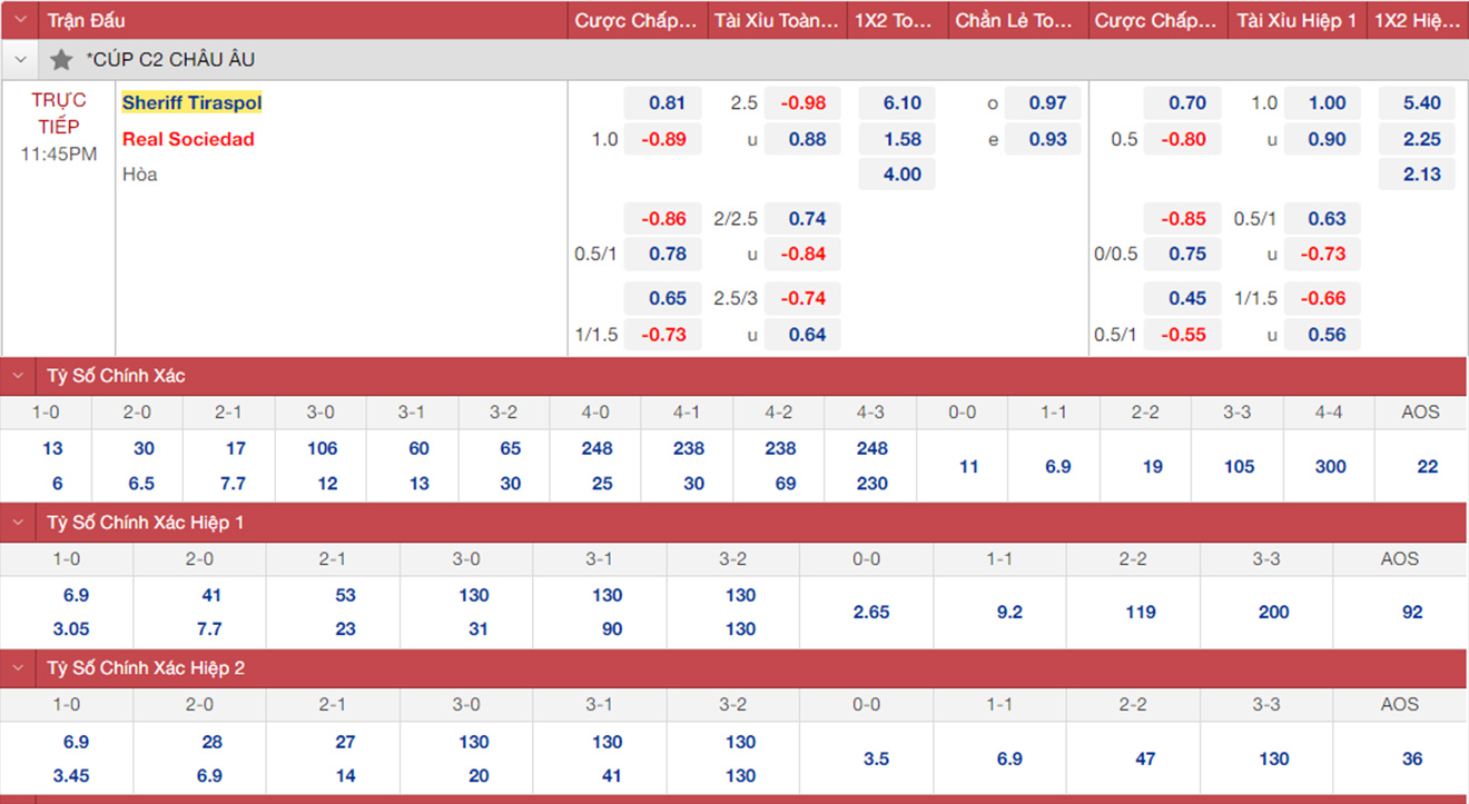 Soi kèo nhà cái Sheriff vs Sociedad. Nhận định bóng đá Cúp C2 (23h45, 6/10). Dự đoán bóng đá Sheriff vs Sociedad. Tỷ lệ kèo Cúp C2.