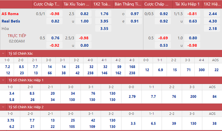 Roma vừa có chiến thắng ngoạn mục 2-1 trước Inter Milan tại Serie A. Trái ngược với đó, Betis lại thua trận 0-1 trước Celta Vigo tại La Liga.