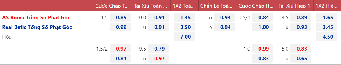 Soi kèo nhà cái Roma vs Betis. Nhận định bóng đá Cúp C2 (2hh00, 7/10). Dự đoán bóng đá Roma vs Betis. Tỷ lệ kèo bóng đá Europa League.