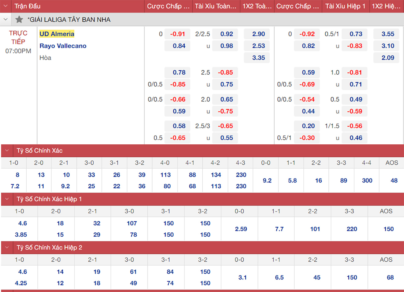 Almeria nhiều khả năng hoà Rayo Vallecano. Almeria có chuỗi 4 trận thua liên tiếp. Trong khi đó, Rayo thắng 2 và thua 3 trận trong 5 trận gần nhất.