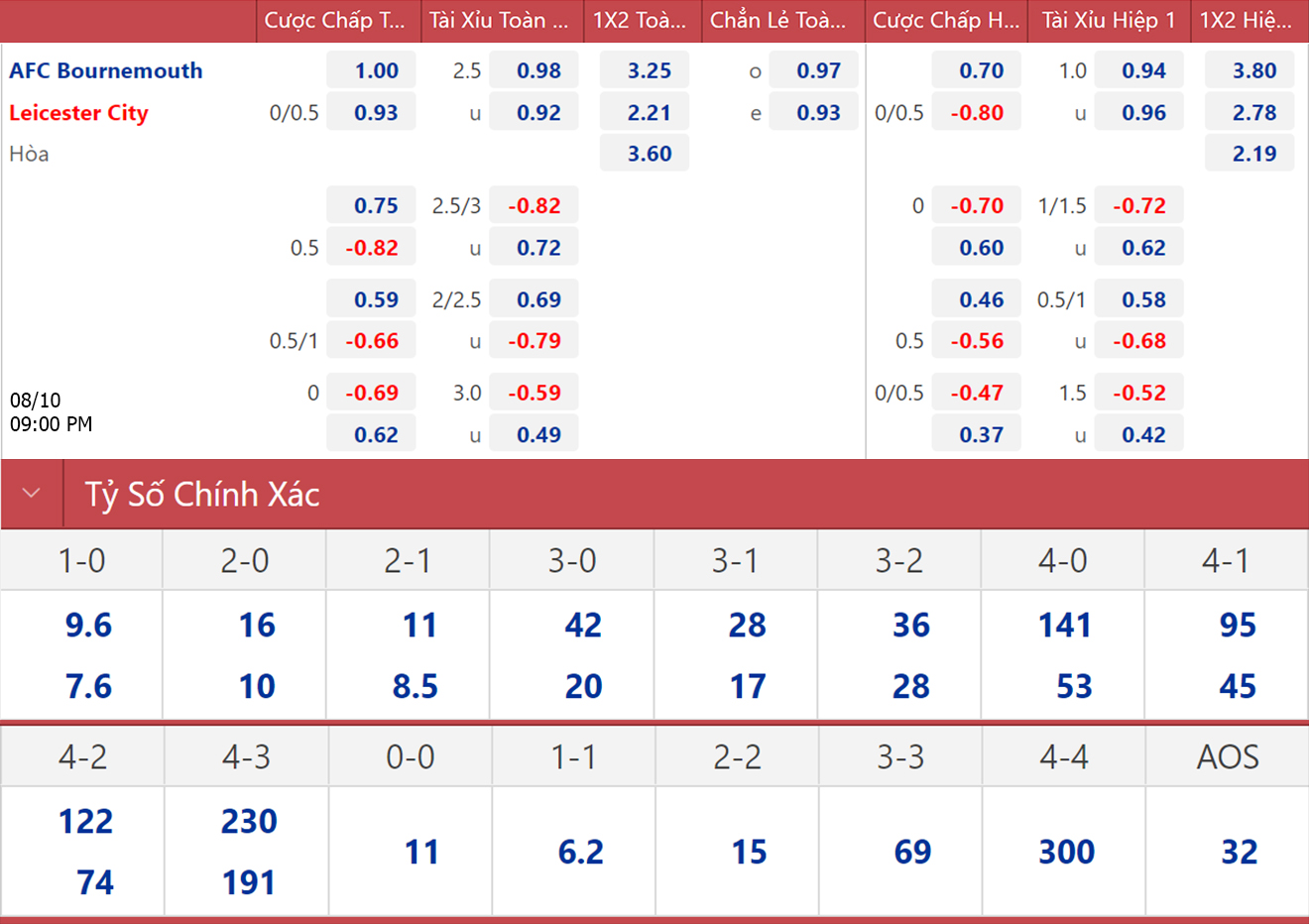 Soi kèo nhà cái Bournemouth vs Leicester. Nhận định, dự đoán bóng đá Anh (21h00, 8/10). Dự đoán bóng đá Bournemouth vs Leicester. Tỷ lệ kèo bóng đá Anh. Soi kèo ngoại hạng Anh.